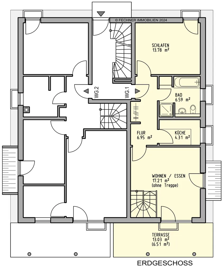 + 2-Zimmer-Wohnung bei circa 58,85m² Wohnfläche (inkl. 1/2 Terrasse = 6,51 m²) bei einer Nutzfläche von 86,94m² !