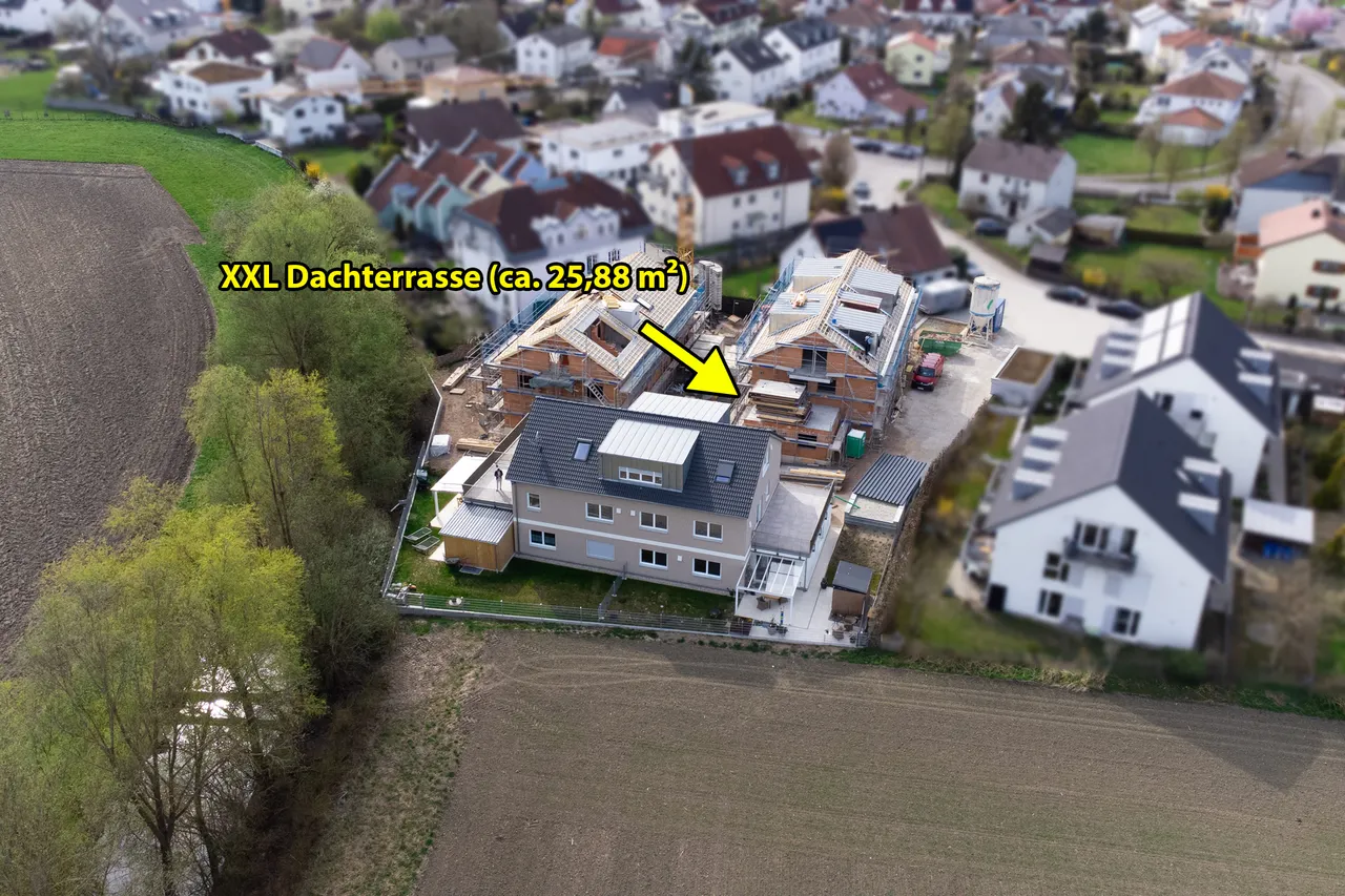 3-ZKB-Wohnung (1. OG, Aufzug) mit XXL-Dachterrasse (25,88m²!), Wallbox vorbereitet, ruhige Lage!