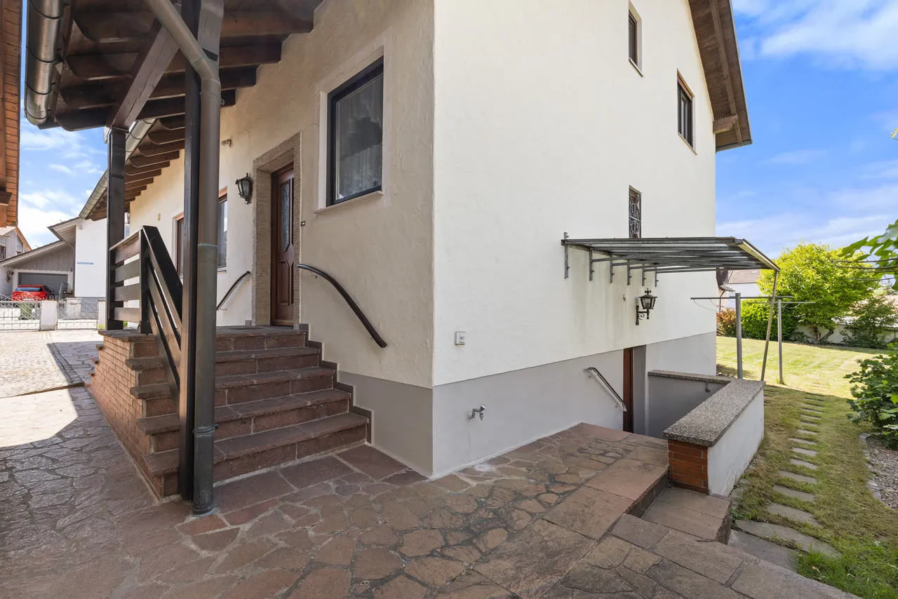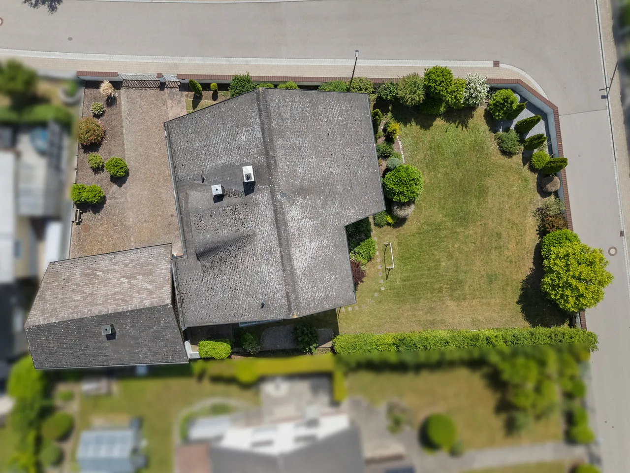 Das Haus wurde ursprünglich zu Beginn der 60er Jahre errichtet und zu Beginn der 80er Jahre erweitert. An die bestehende Einzelgarage wurde in den frühen 90er Jahren eine zusätzliche, größere Garage angebaut. Die Hofeinfahrt besteht aus Kopfsteinpflaster, verlegt im Segmentbogenverband.