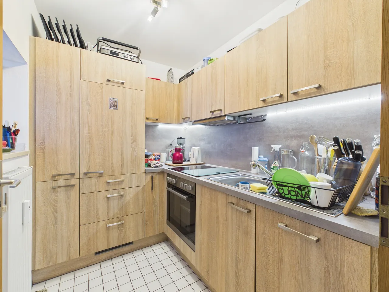 + Es sind braune Holzfurnier-Türen verbaut (Eiche).