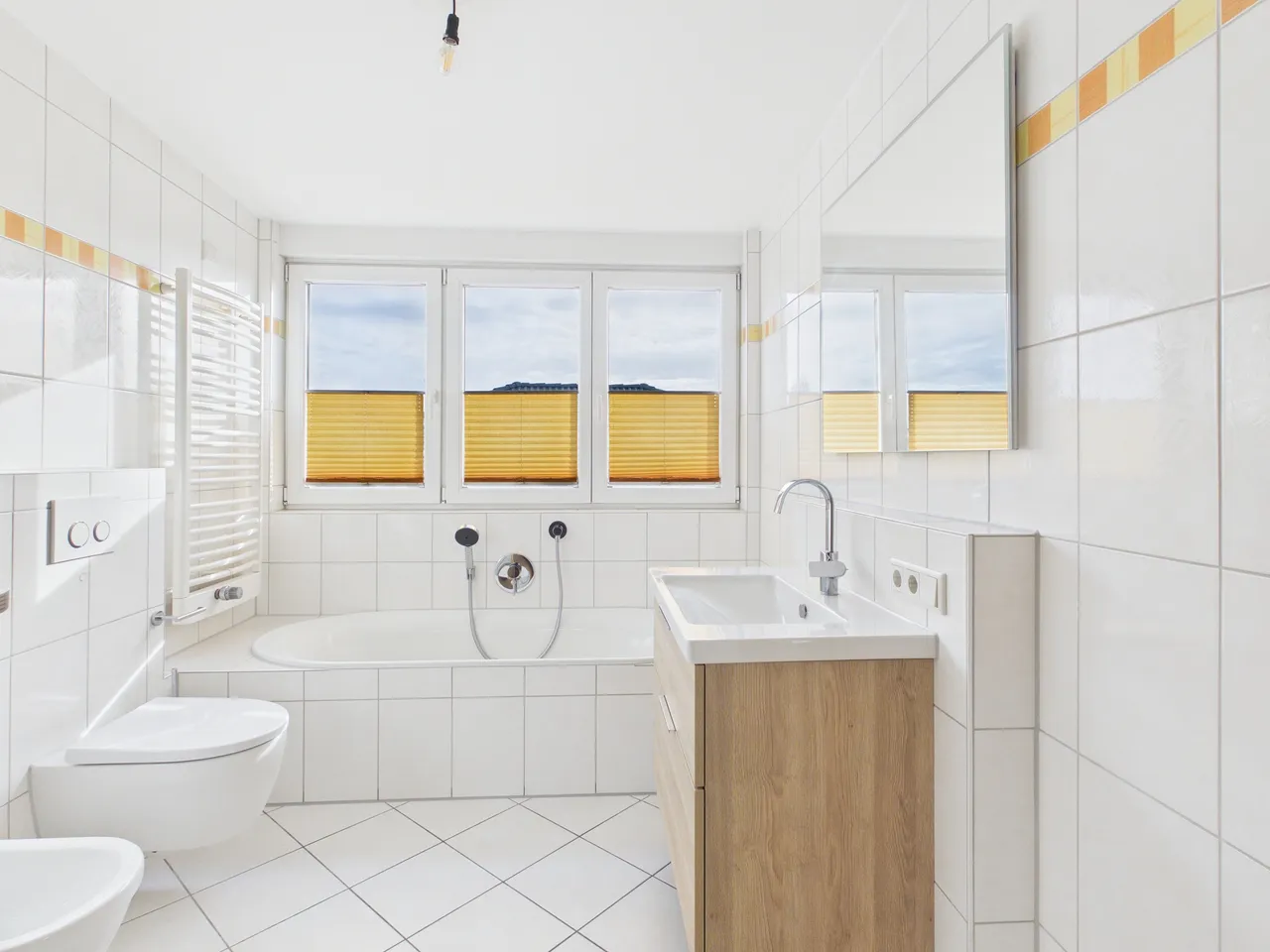 + Im Badezimmer ist eine Fußbodentemperierung vorhanden, zusätzlich sorgt ein Handtuchheizkörper für behagliche Wärme.