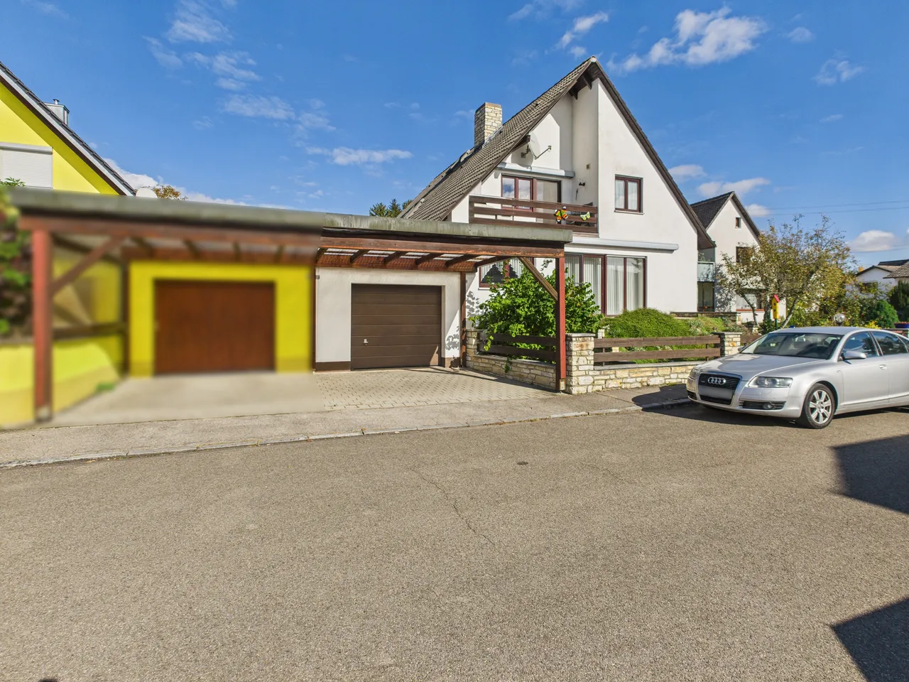 Eine Einzelgarage bietet bequem Platz für ein Fahrzeug - vor der Garage kann ein weiteres Fahrzeug unter einem Carport geparkt werden. Über die Einzelgarage ist auch ein direkter Gartenzugang möglich. Der große Außenbereich befindet sich auf der Gebäuderückseite. Eine überdachte Kelleraußentreppe ist vorhanden.