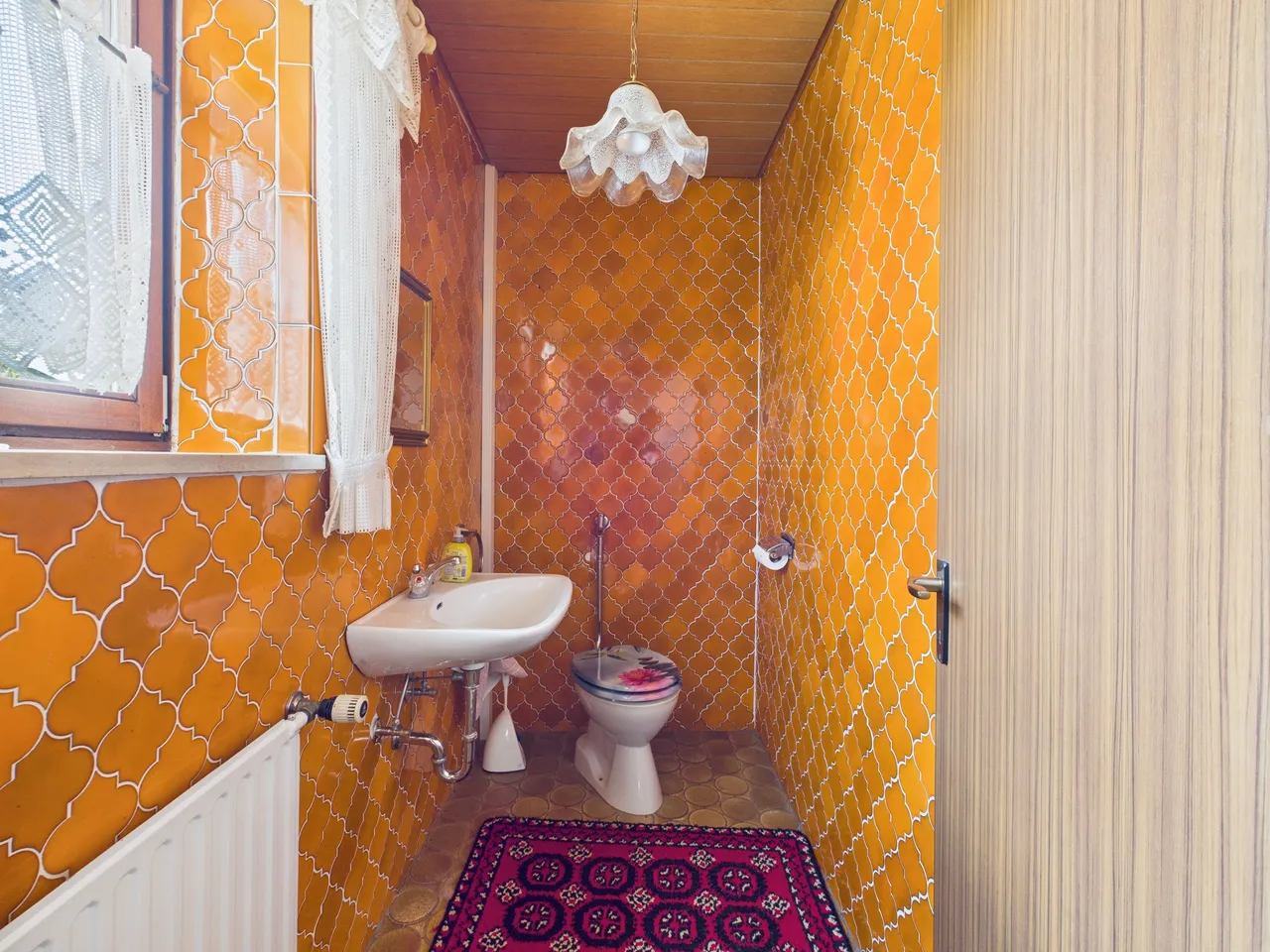 + Im Erdgeschoss steht ein zusätzliches Gäste-WC zur Verfügung, ebenfalls im Standard der 70er Jahre.