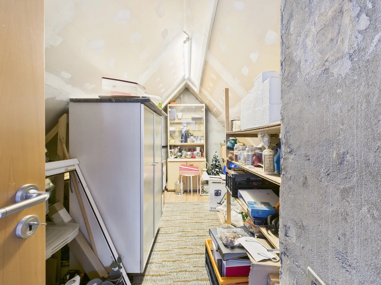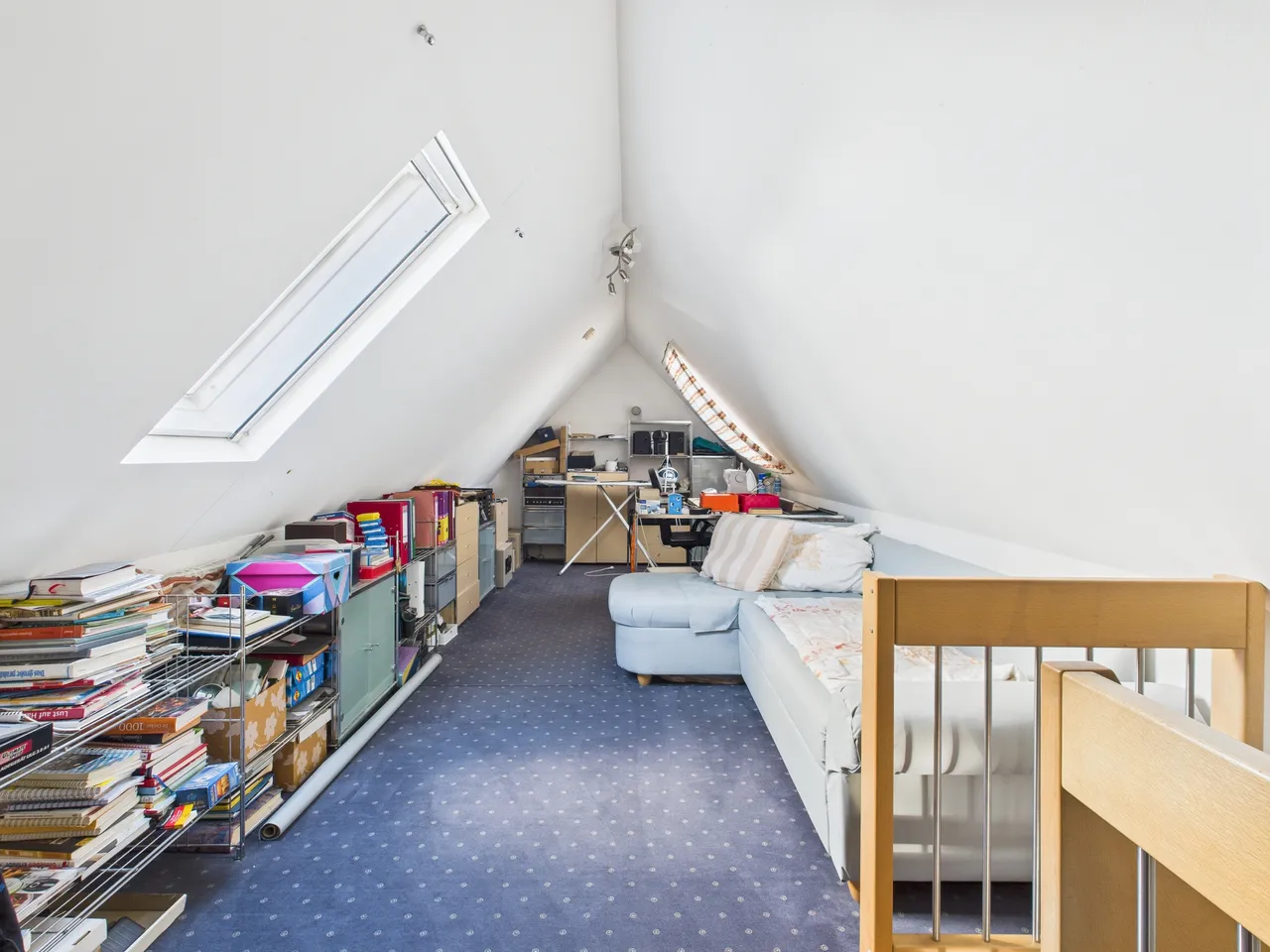 Im Dachgeschoss befindet sich ebenfalls eine 3-Zimmer-Wohnung mit großer Wohnküche. Die Wohnung wurde bereits Ende der 90er Jahre modernisiert. Im Jahr 2000 wurde zudem eine Dachgaube zur Vergrößerung der Wohnküche eingebaut. Der Dachspeicher kann über eine Raumspartreppe von der Diele der Dachgeschosswohnung erreicht werden.