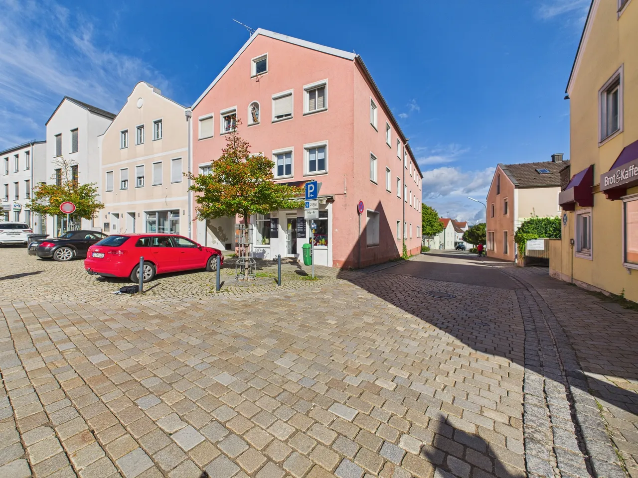 Das Wohn- und Geschäftshaus befindet sich direkt am Köschinger Marktplatz. Alle Dinge des täglichen Bedarfs können bequem in der näheren Umgebung erledigt werden.