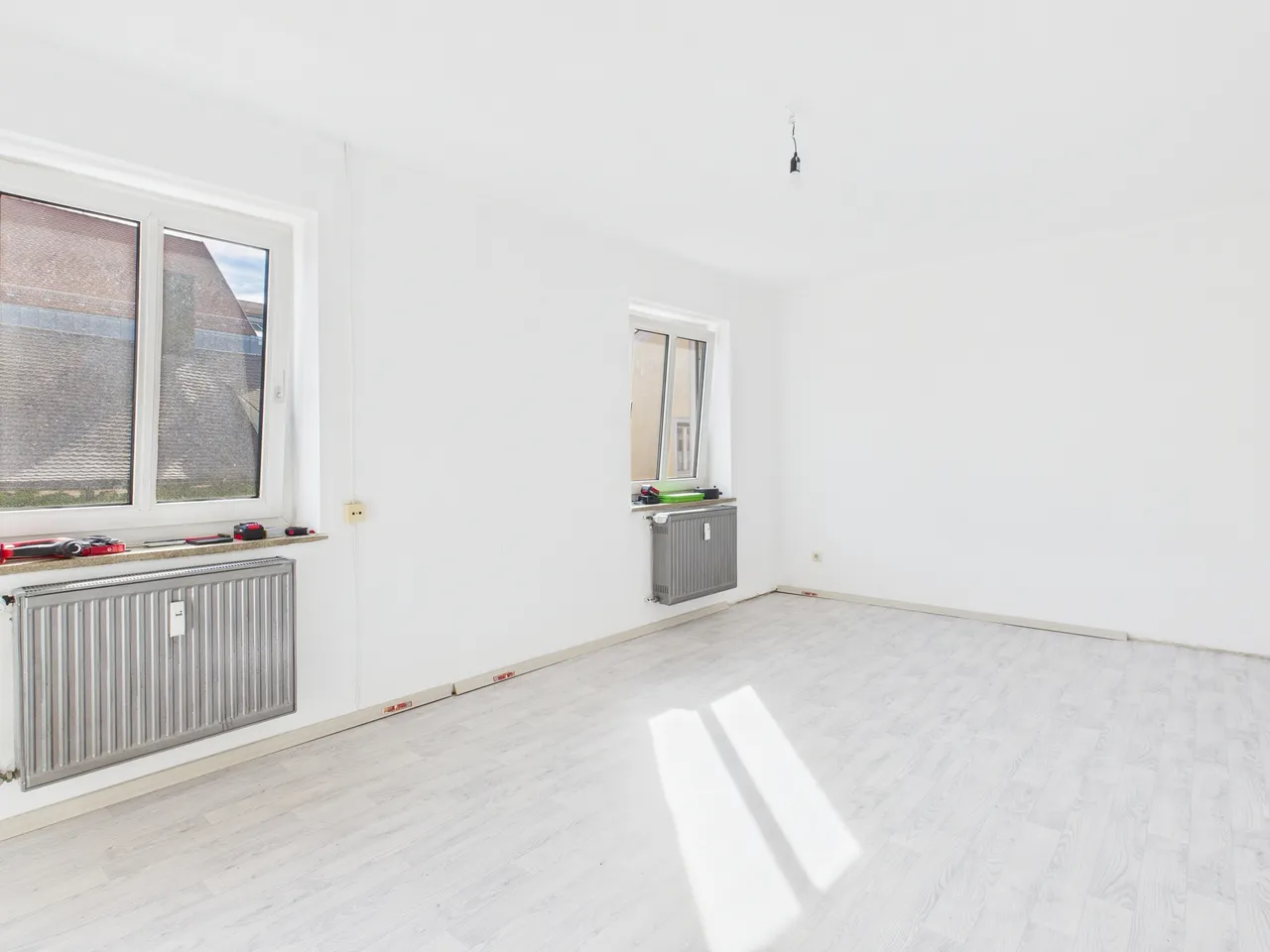 + weiße Kunststofffenster mit Isolierverglasung, Rollos sind nicht vorhanden!