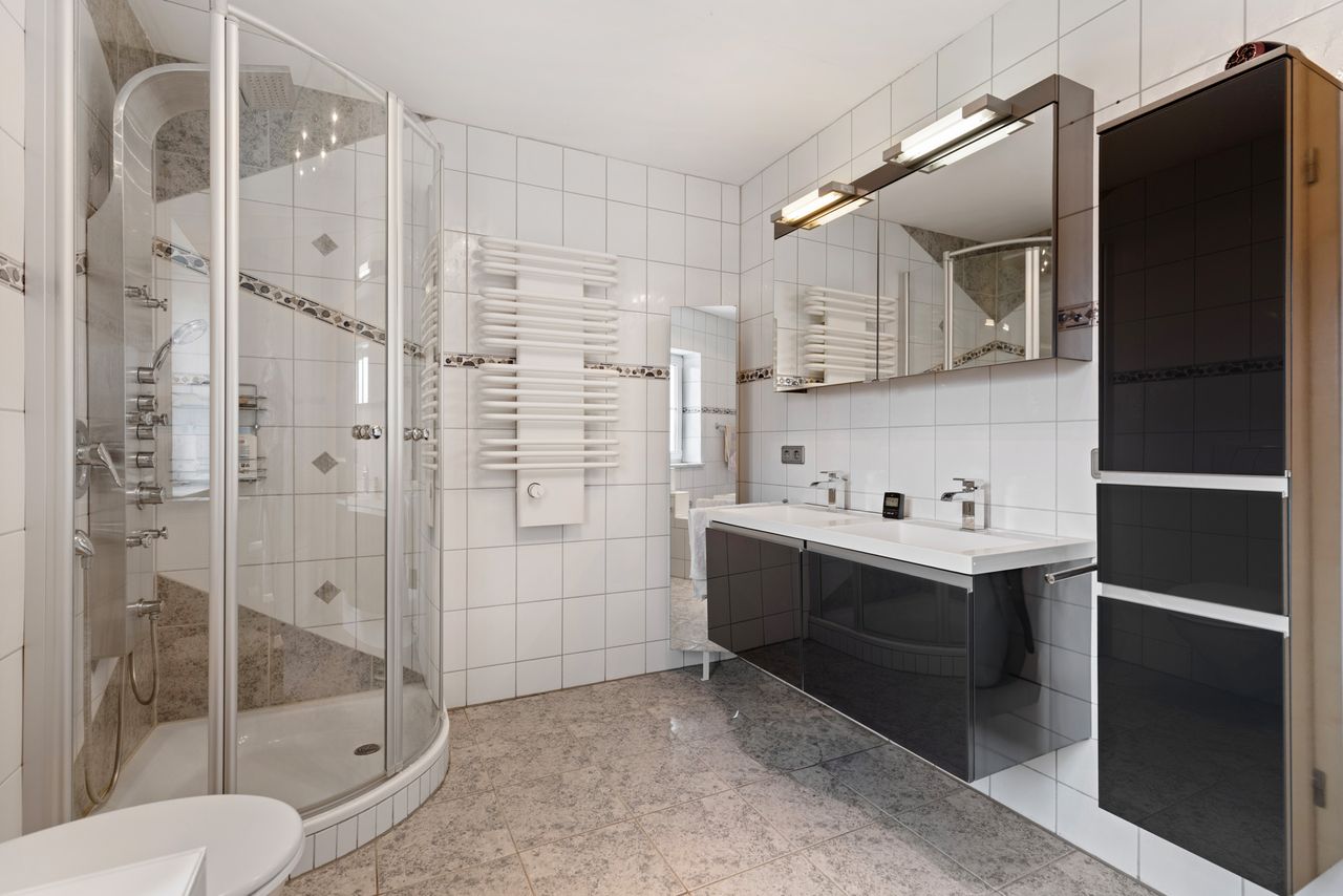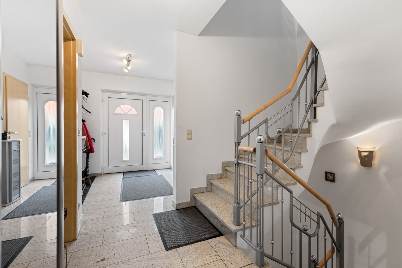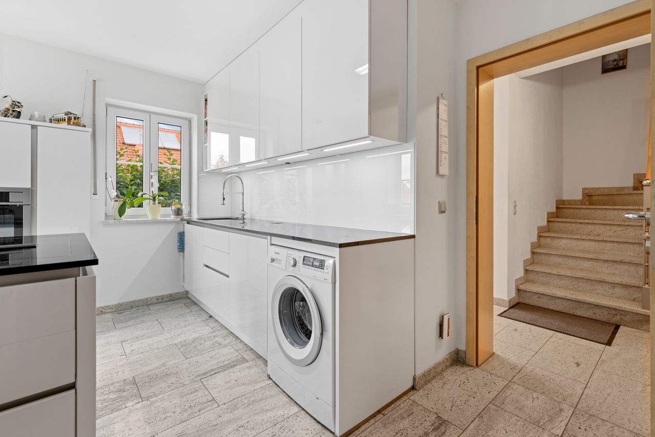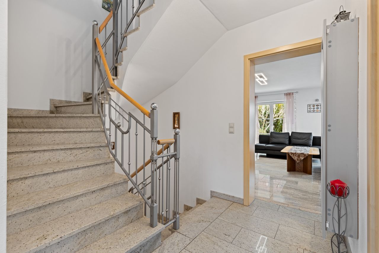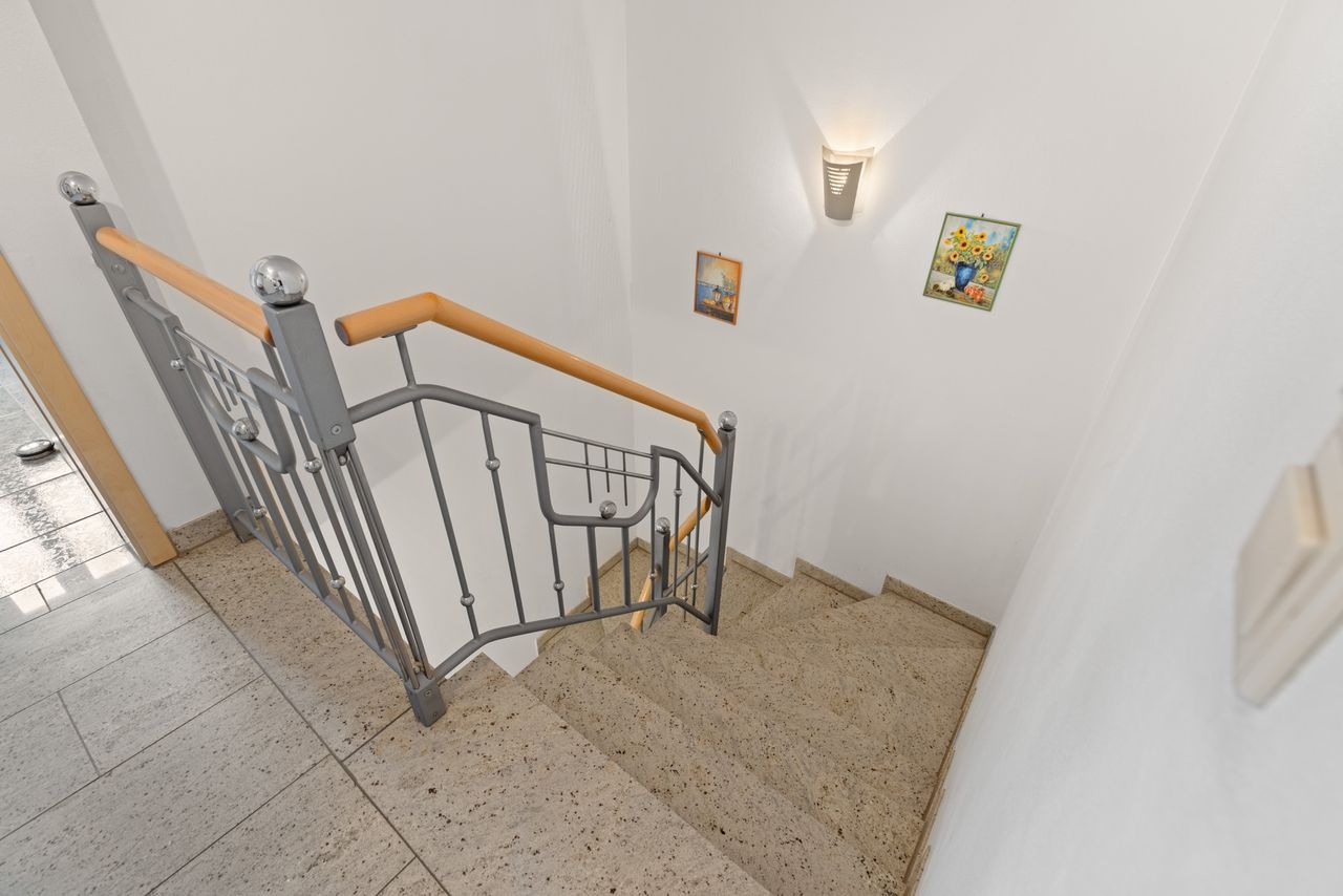 + Im Erdgeschoss befindet sich ein pflegeleichter Granit-Bodenbelag. Eine Fußbodenheizung ist hier (teilweise) vorhanden.