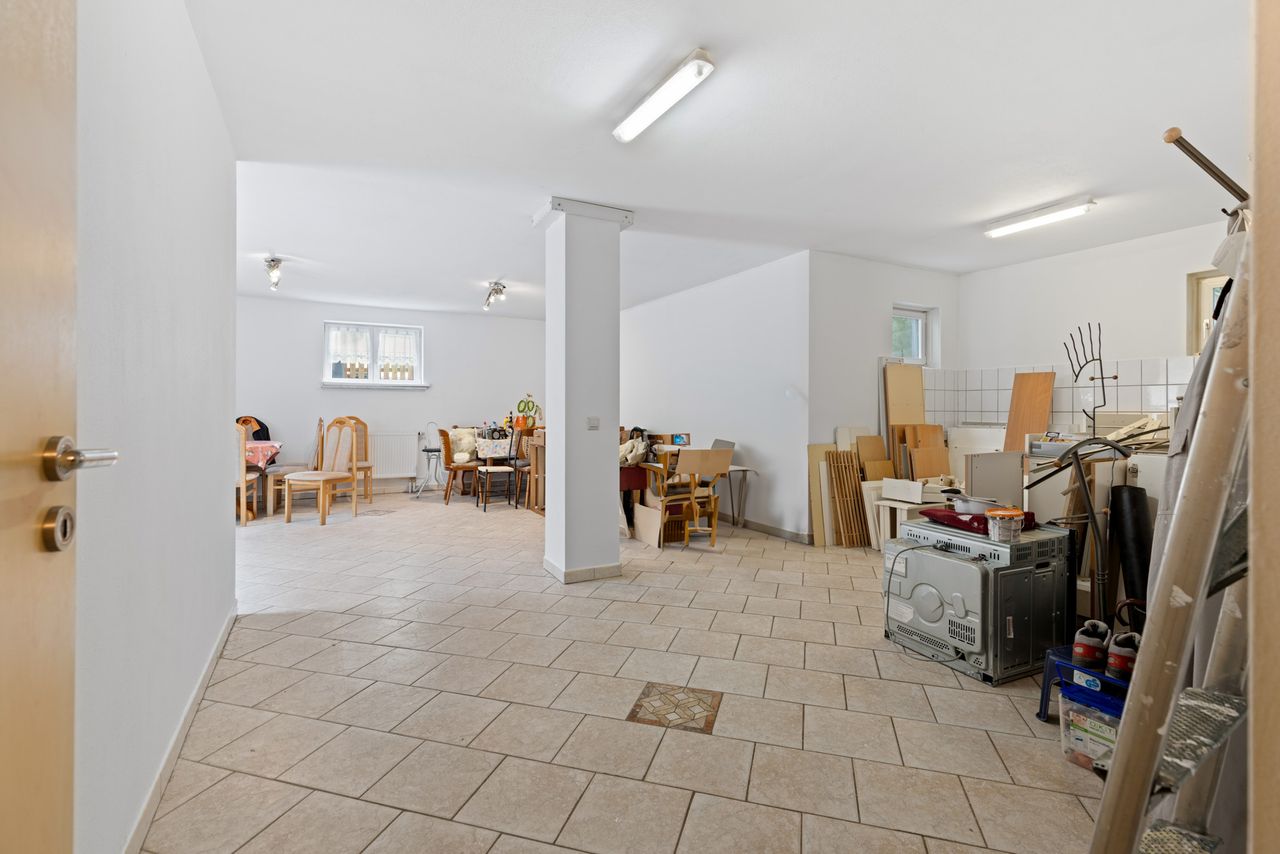+ Das Kellergeschoss ist überwiegend gefliest.