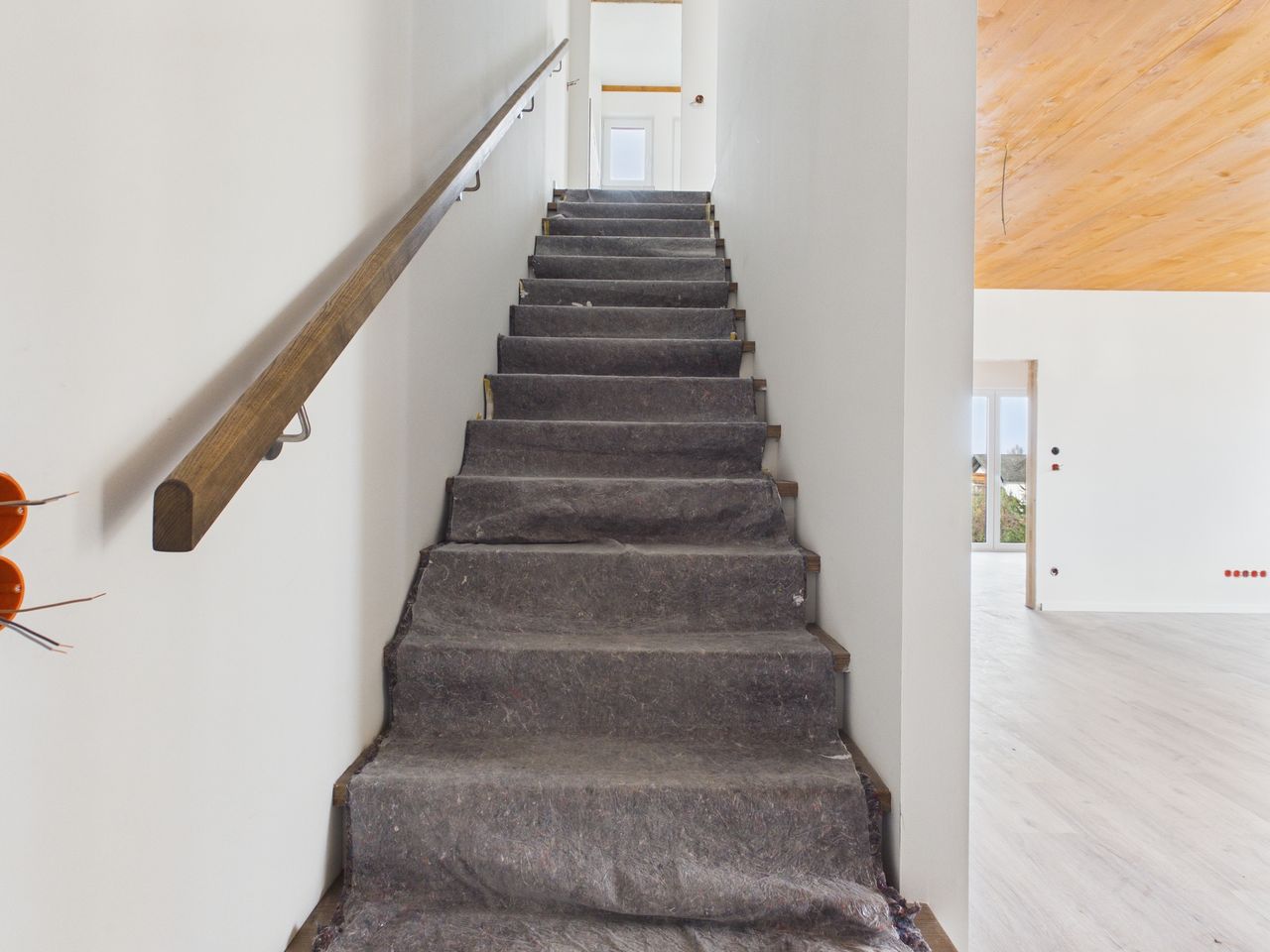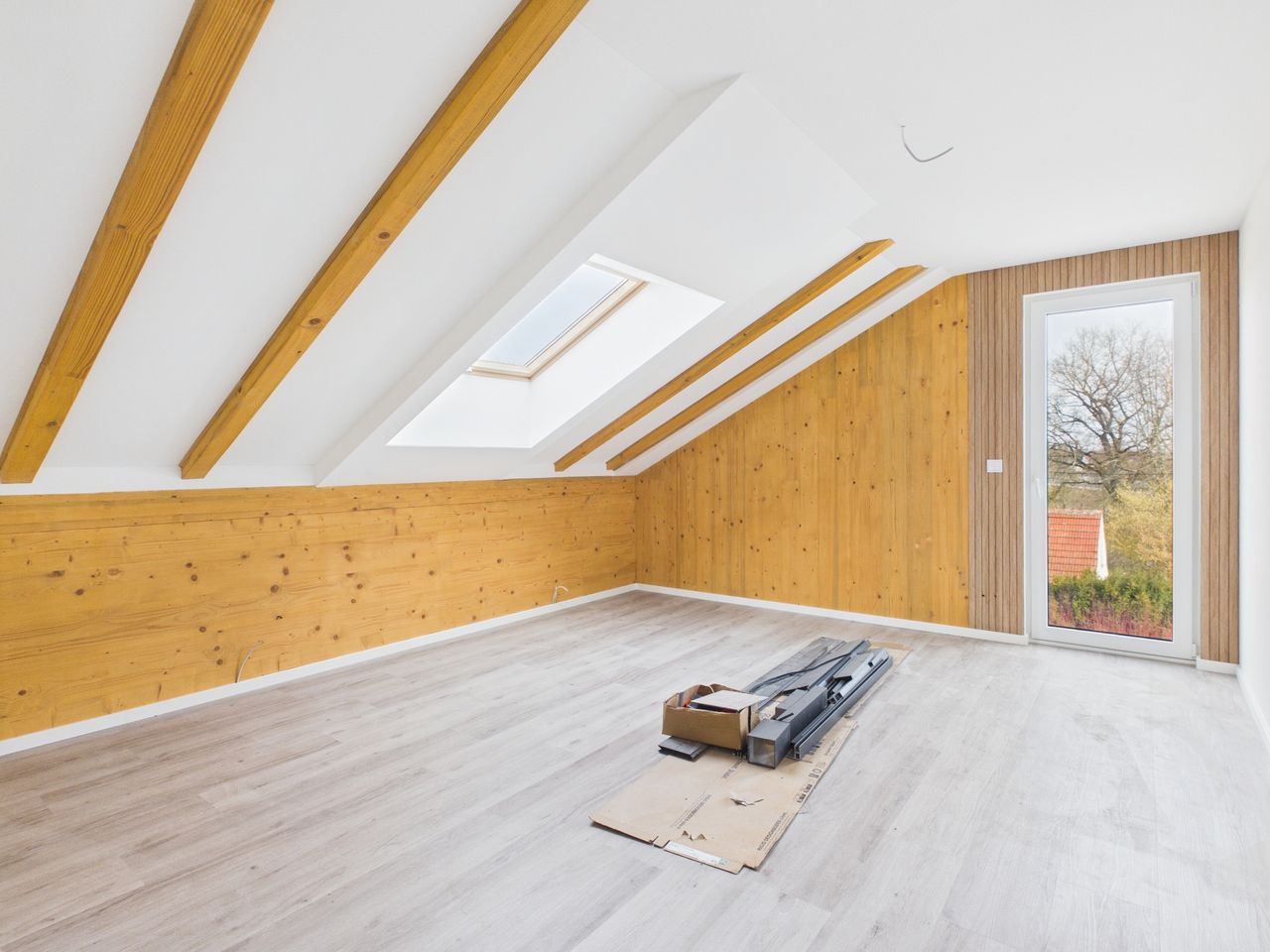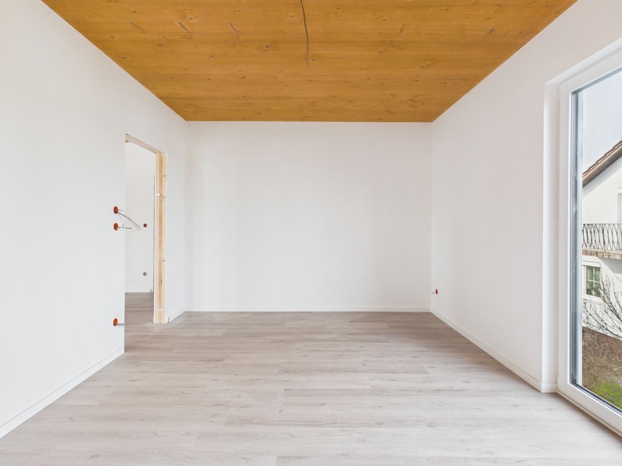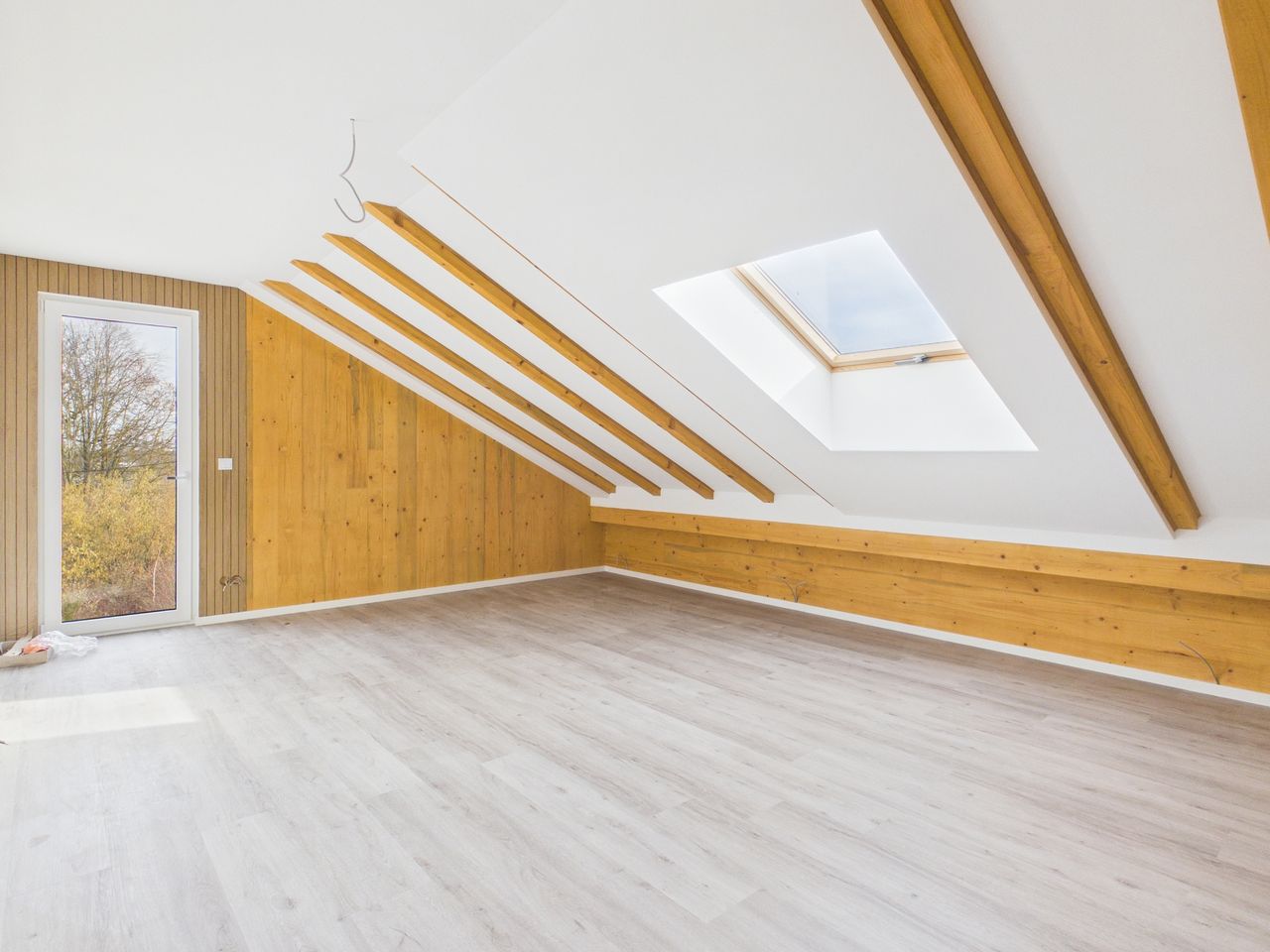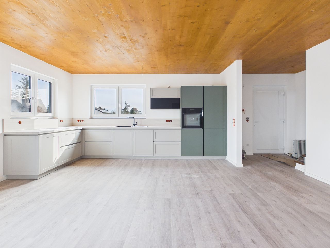 Alle Wohn- und Schlafräume sind mit hochwertigen Vinylböden in Eiche-Echtholzoptik ausgestattet. Die restlichen Räume und die Sanitärbereiche sind mit Feinsteinzeug-Fliesen gefliest. Alle Räume verfügen über eine Fußbodenheizung.