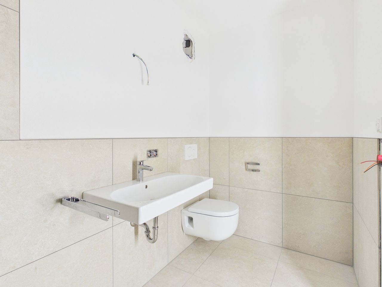 + Badezimmer mit großer begehbarer Dusche, Waschtisch und WC