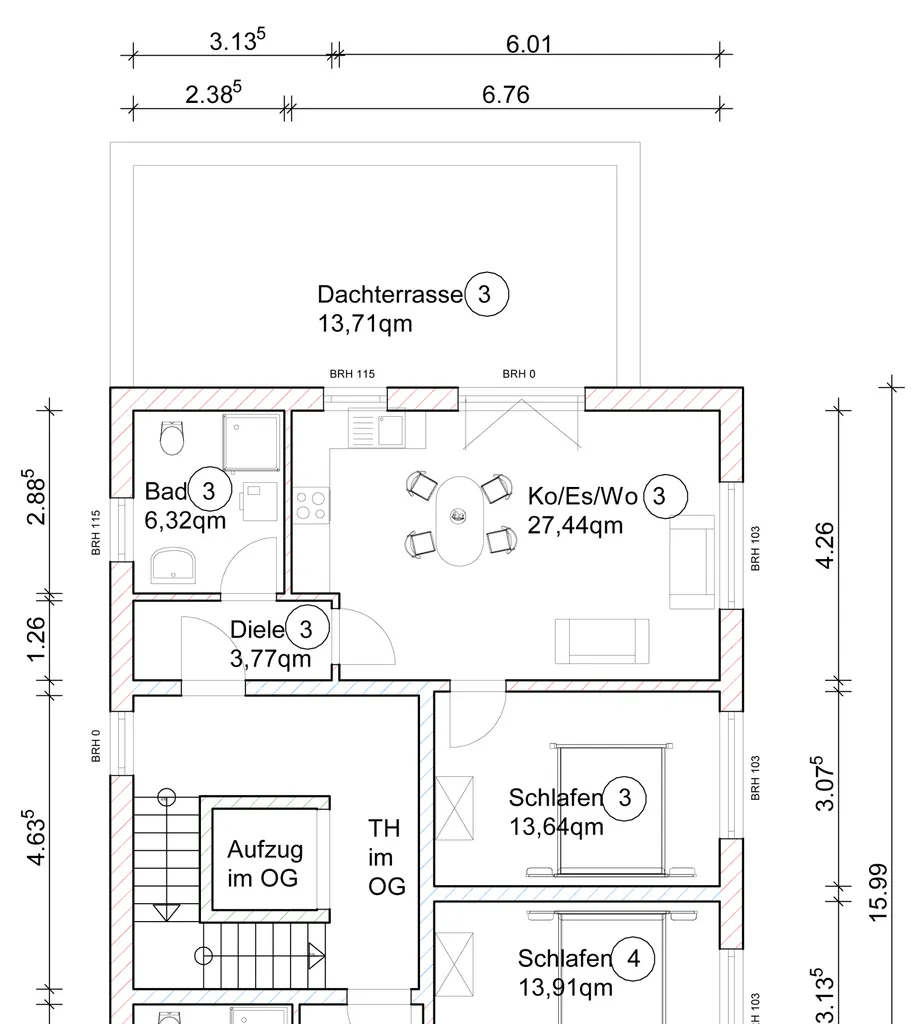 + Personenaufzug der Firma OTIS vom Kellergeschoss bis ins Dachgeschoss.