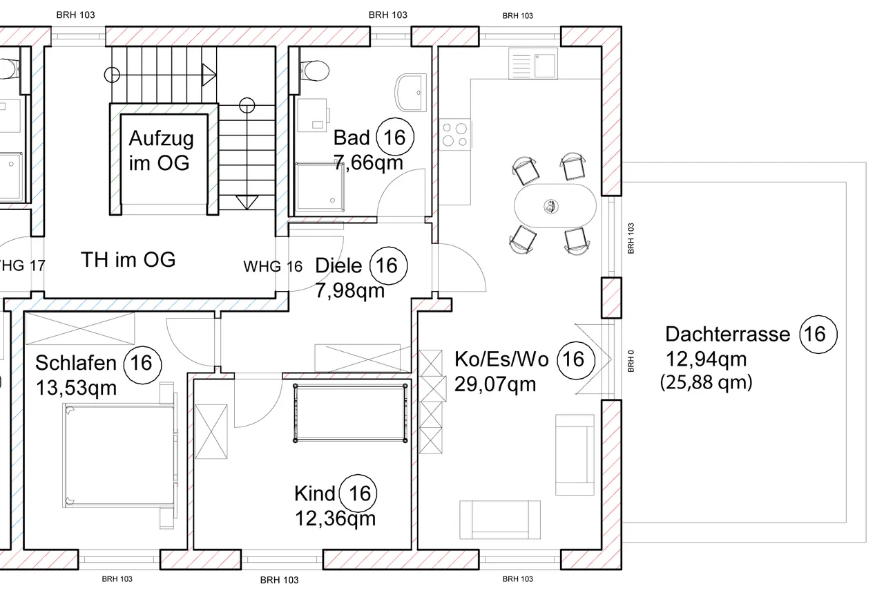 + Massivbauweise - auch im Hinblick auf die Innenwände - kein Trockenbau.