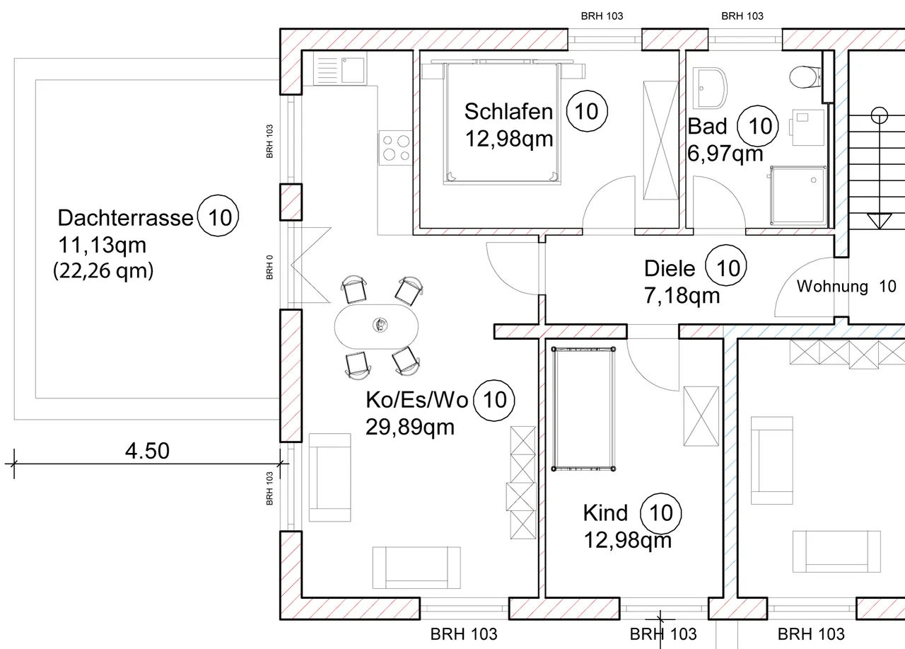+ Massivbauweise - auch im Hinblick auf die Innenwände - kein Trockenbau.
