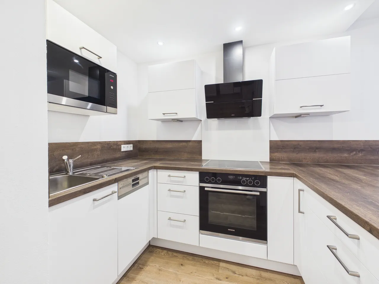 + Einbauküche: Die Einbauküche ist inklusive aller Elektro-Großgeräte bereits im Mietpreis ablösefrei enthalten.