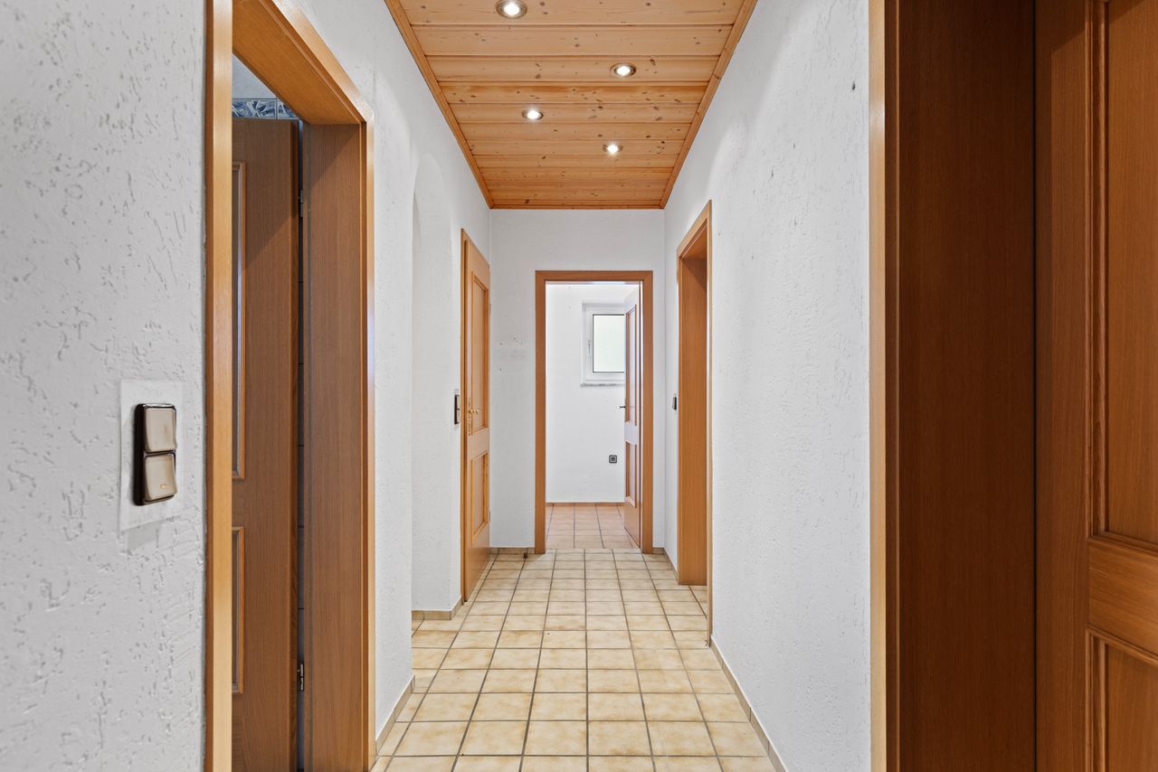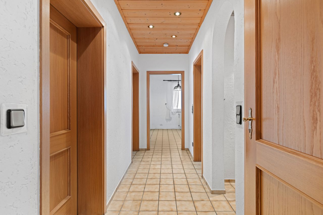 + Die Flure / Dielen sind gefliest, ebenso die Badezimmer.