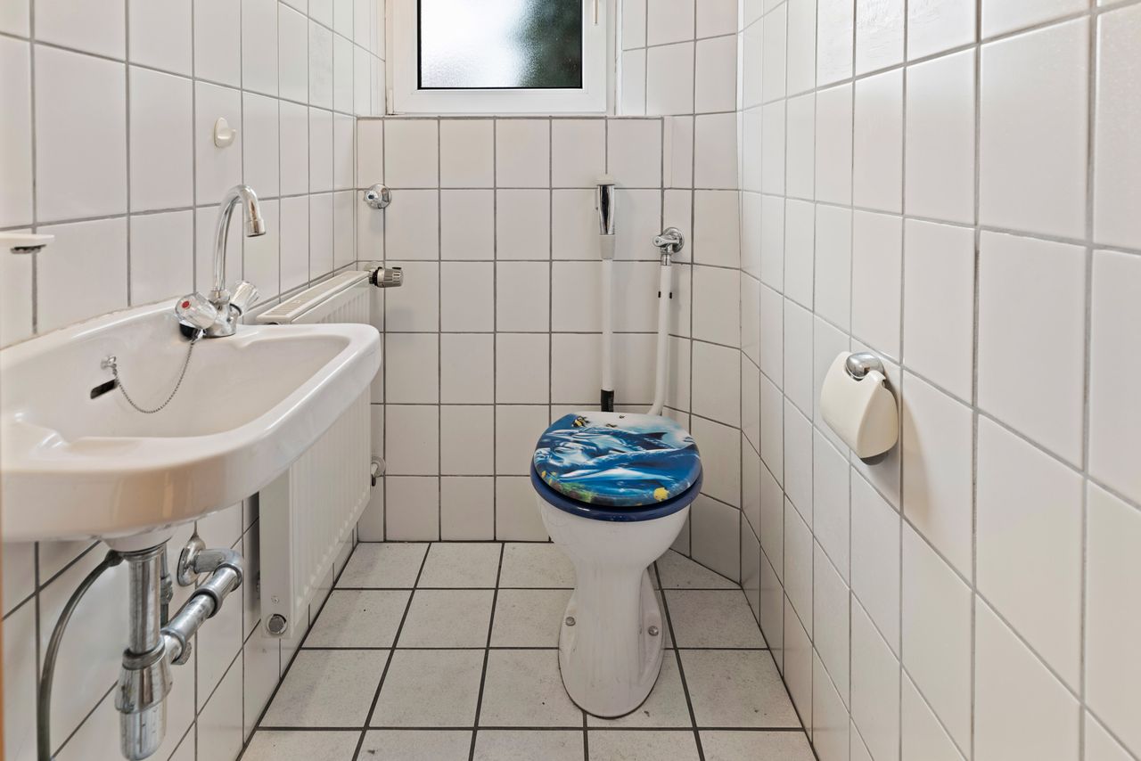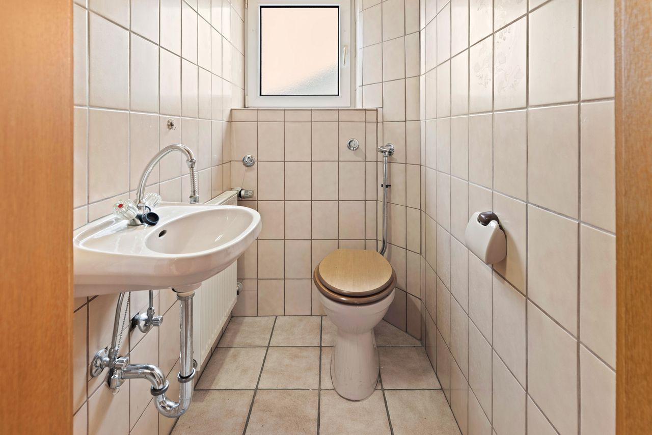 Es befindet sich im Erd- und Obergeschoss je ein Badezimmer und ein separates WC. Zuletzt wurde nur die Küche im Erdgeschoss genutzt, die Küche im Obergeschoss wurde als separates Zimmer genutzt, es sind noch alle Küchenanschlüsse vorhanden.