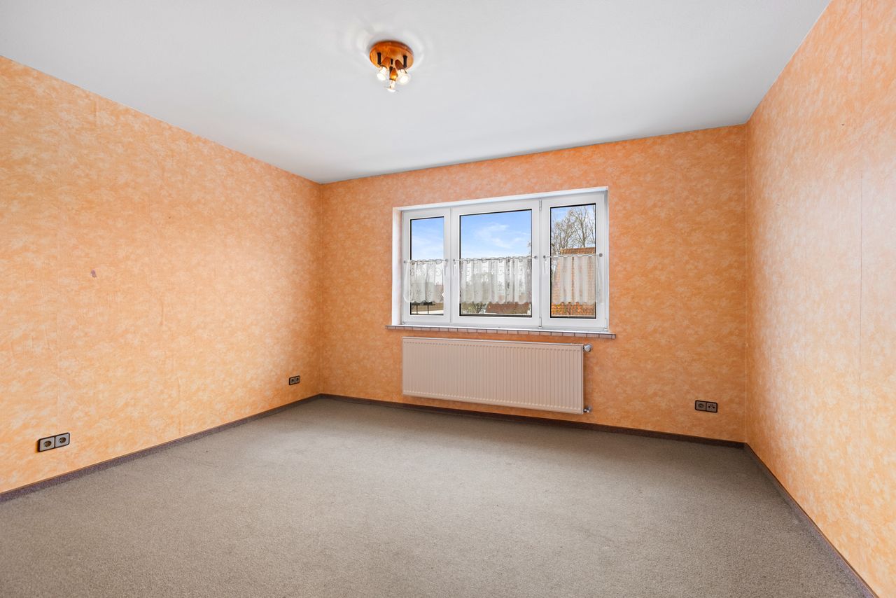 + Es sind weiße Kunststofffenster aus den 90er Jahren mit 2-Scheiben-Isolierverglasung und Rollos (teilweise) vorhanden.