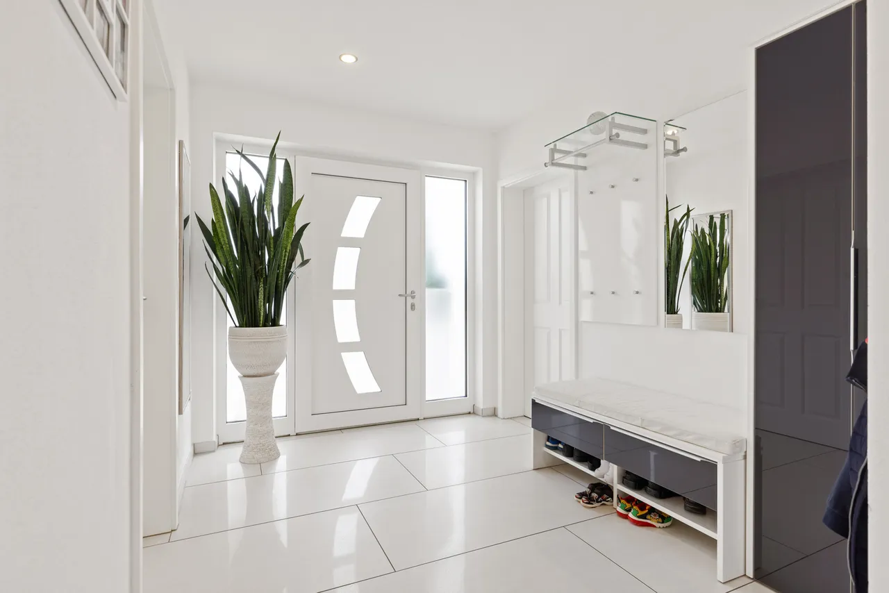 + Attraktiv gestaltete weiße Innentüren unterstreichen die hellen und freundlichen Räumlichkeiten.