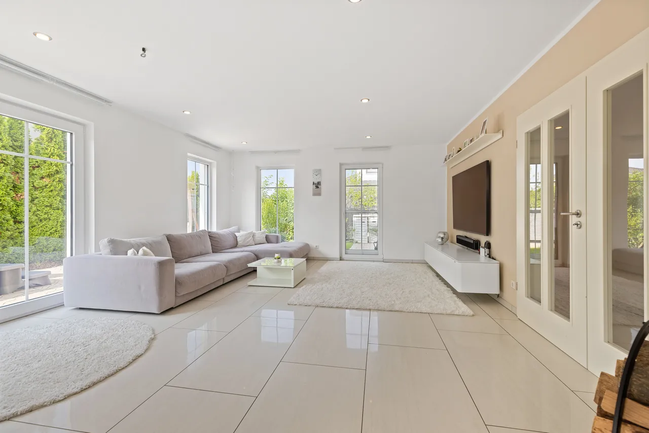 + Eine massiv errichtete Doppelgarage mit Wallbox- und Starkstrom-Anschluss und direktem Gartenzugang.