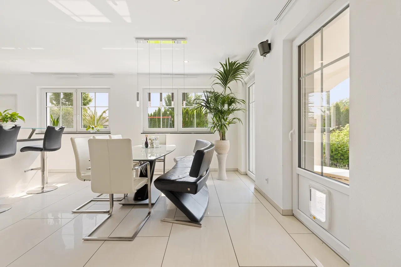 Im Haus ist bereits ein Smart-Home-System der Firma LOXONE installiert. Hierüber können die elektrischen Rollos, die Beleuchtung und vieles mehr gesteuert werden. LOXONE ist führend im Bereich der intelligenten Gebäudeautomation. Das System kann beliebig erweitert und abgeändert werden. Eine Neuprogrammierung bei Eigentümerwechsel empfiehlt sich. Gerne nennen wir Ihnen regionale LOXONE Partner. Mehr Informationen erhalten Sie hier: www.loxone.com