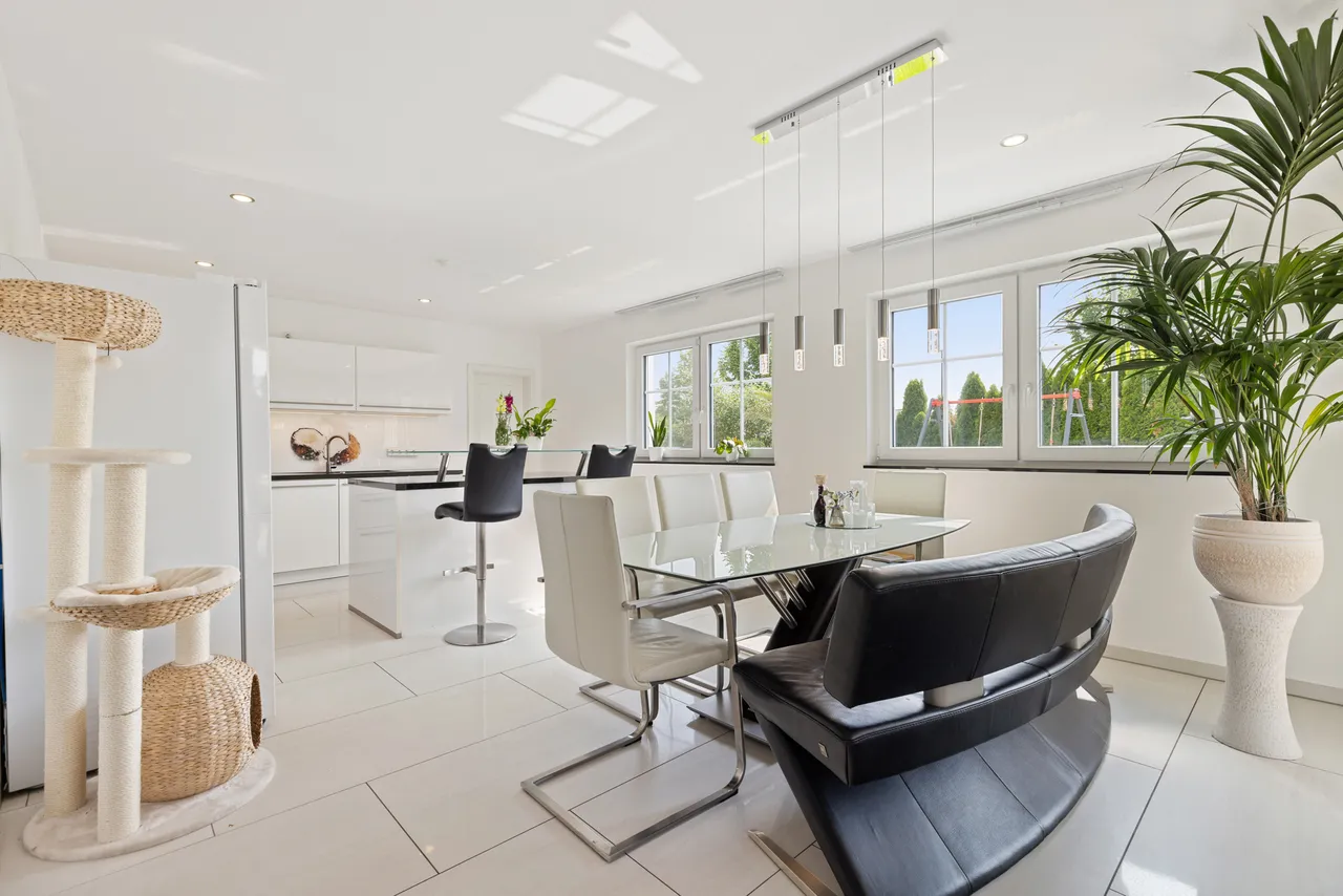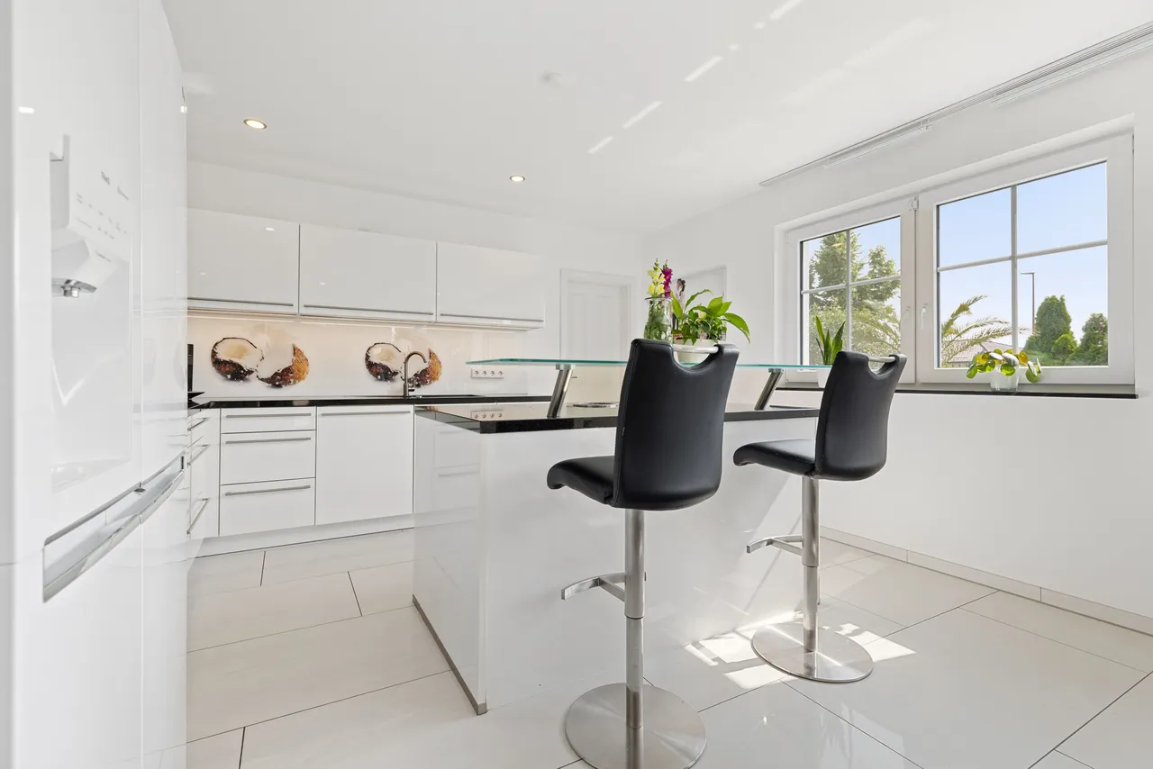 Die auf den Fotos ersichtliche Einbauküche ist bereits im Kaufpreis enthalten. Neben hochwertigen Einbaugeräten wurde auch eine Granit-Arbeitsplatte verbaut. Ebenfalls im Kaufpreis enthalten sind der Whirlpool im Außenbereich, die elektrische Markise und der Schwedenofen im Wohnzimmer.