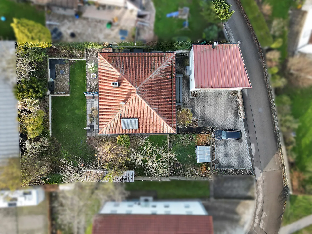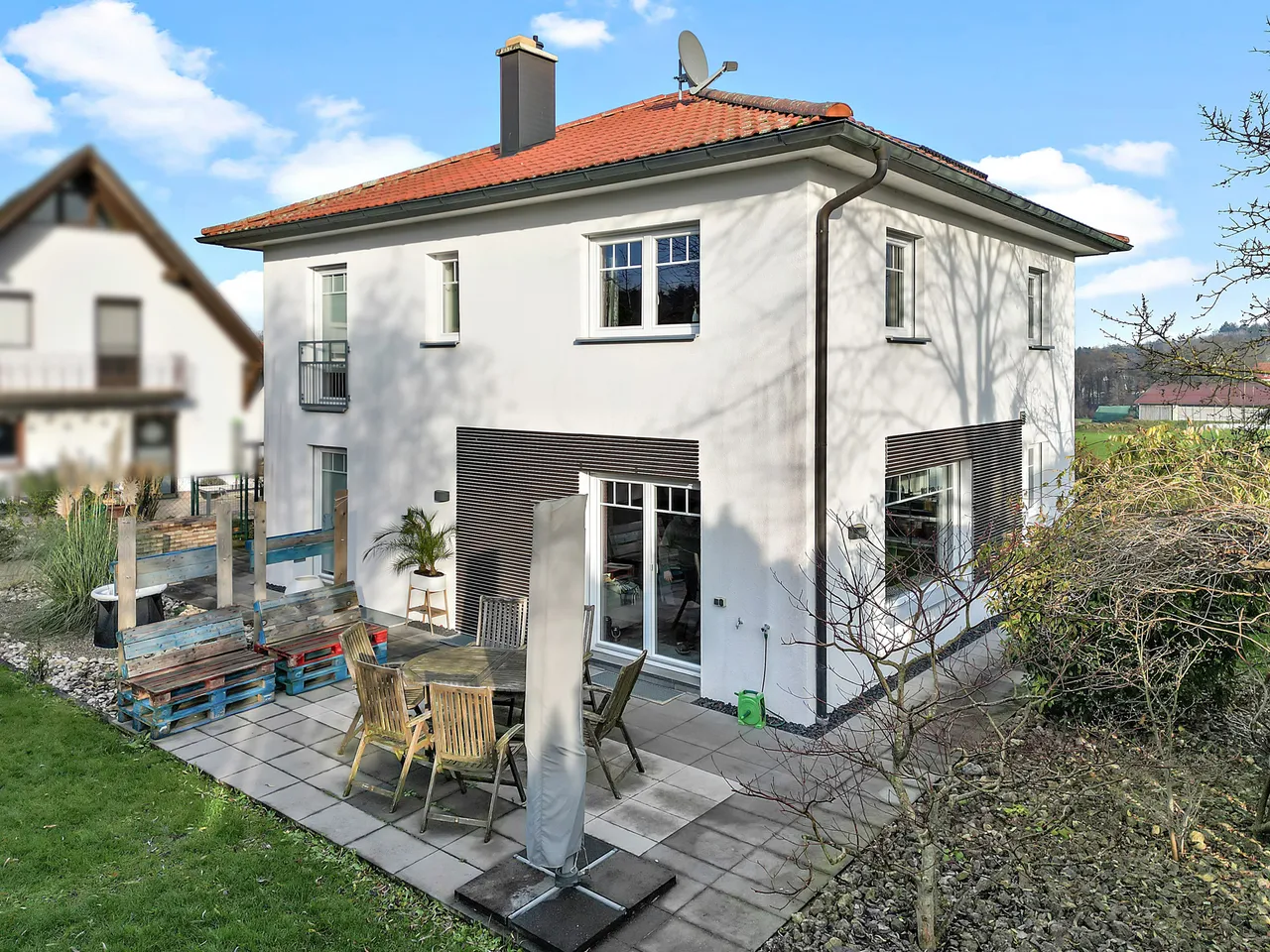 Im Grundstück selbst ist die Immobilie überwiegend nach Süden- und Westen ausgerichtet.