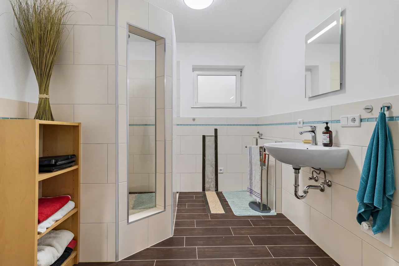 + Das zweite Badezimmer im Keller- bzw. Untergeschoss verfügt über eine Dusche.