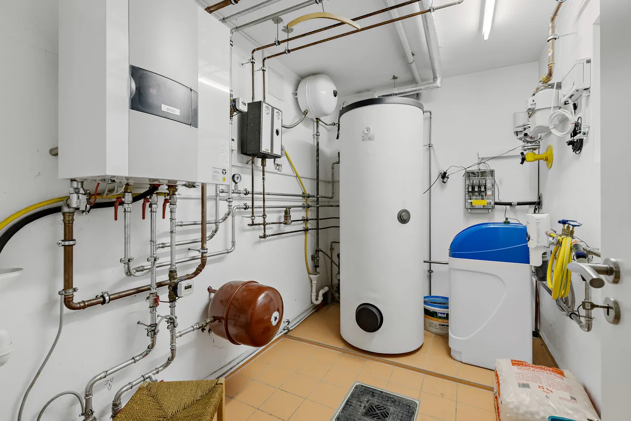 + Besonders angenehm ist die vorhandene Enthärtungsanlage im Kellergeschoss (wunschweise weiches Wasser).