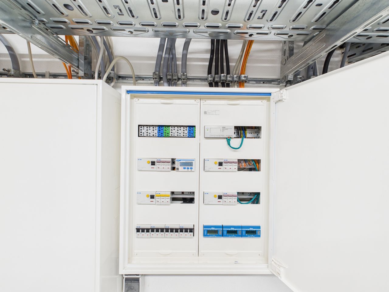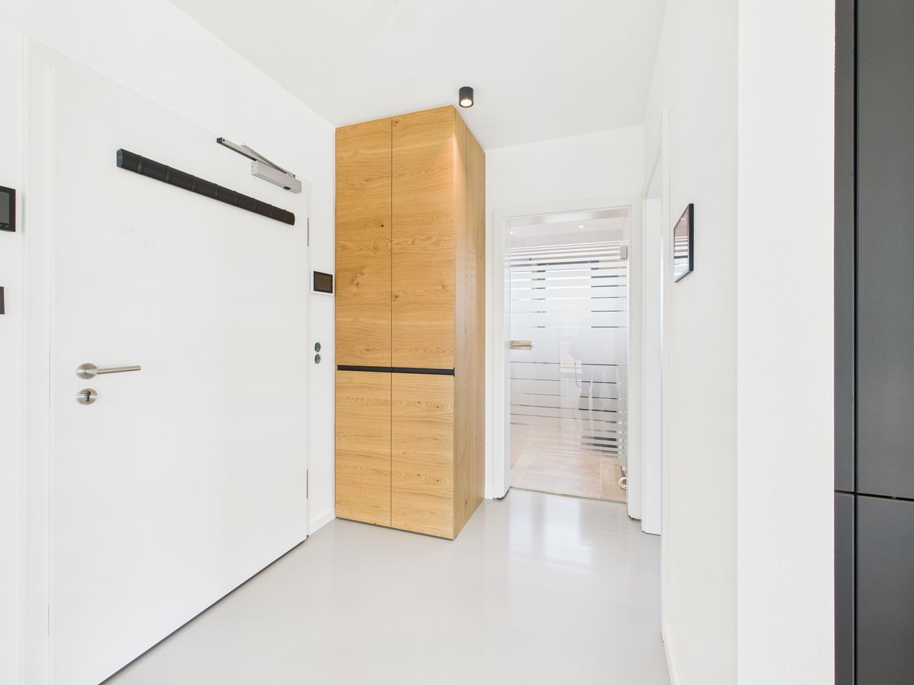 + Die Gebäudeautomation / die Smart-Home-Technik befindet sich versteckt in einem Schreiner-Möbelstück im Eingangsbereich.