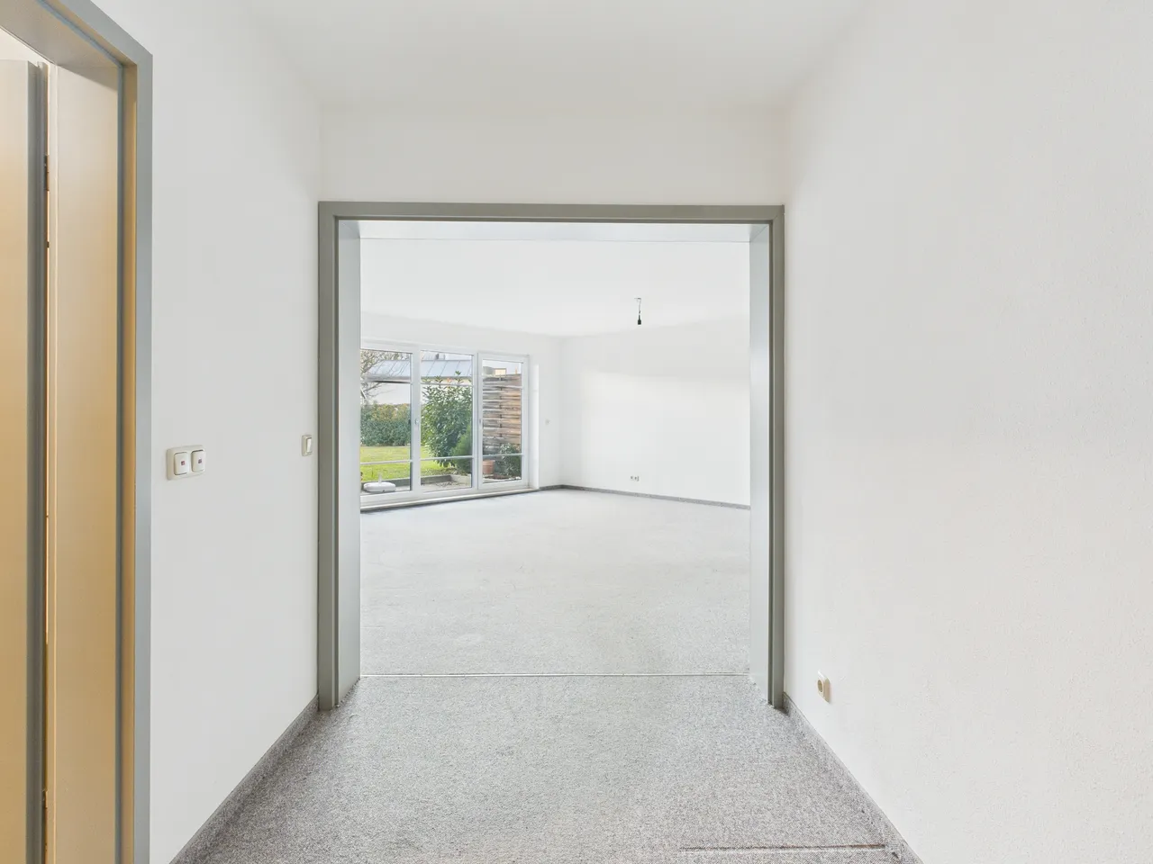 Die Wohnung ist innerhalb des Hauses überwiegend nach Westen ausgerichtet - ebenso die Terrasse. Der vor der Terrasse befindliche Garten befindet sich im Gemeinschaftseigentum.