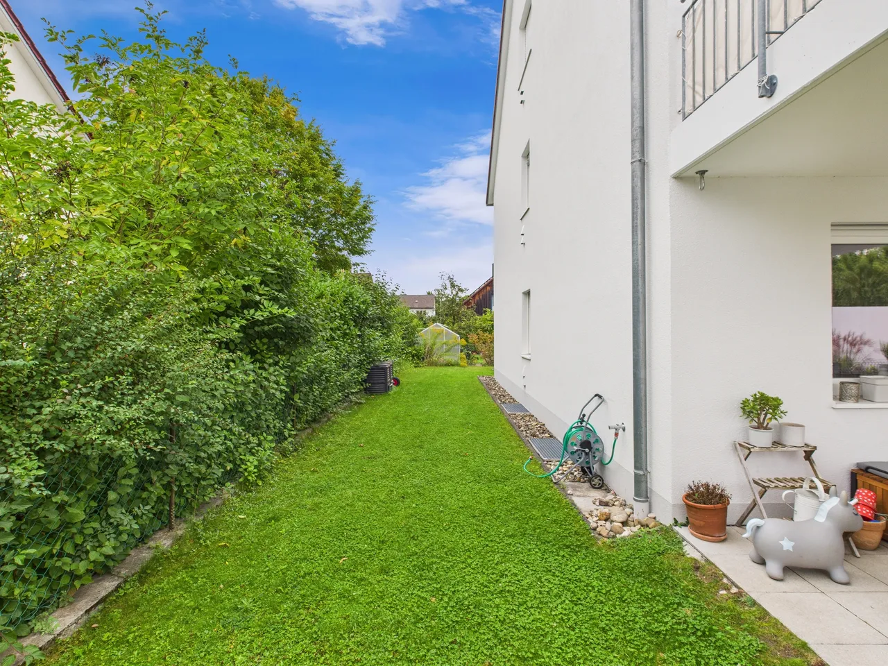 Die Erdgeschosswohnung ist nach Südwesten ausgerichtet - es ist dementsprechend sonnig, insbesondere im Garten.