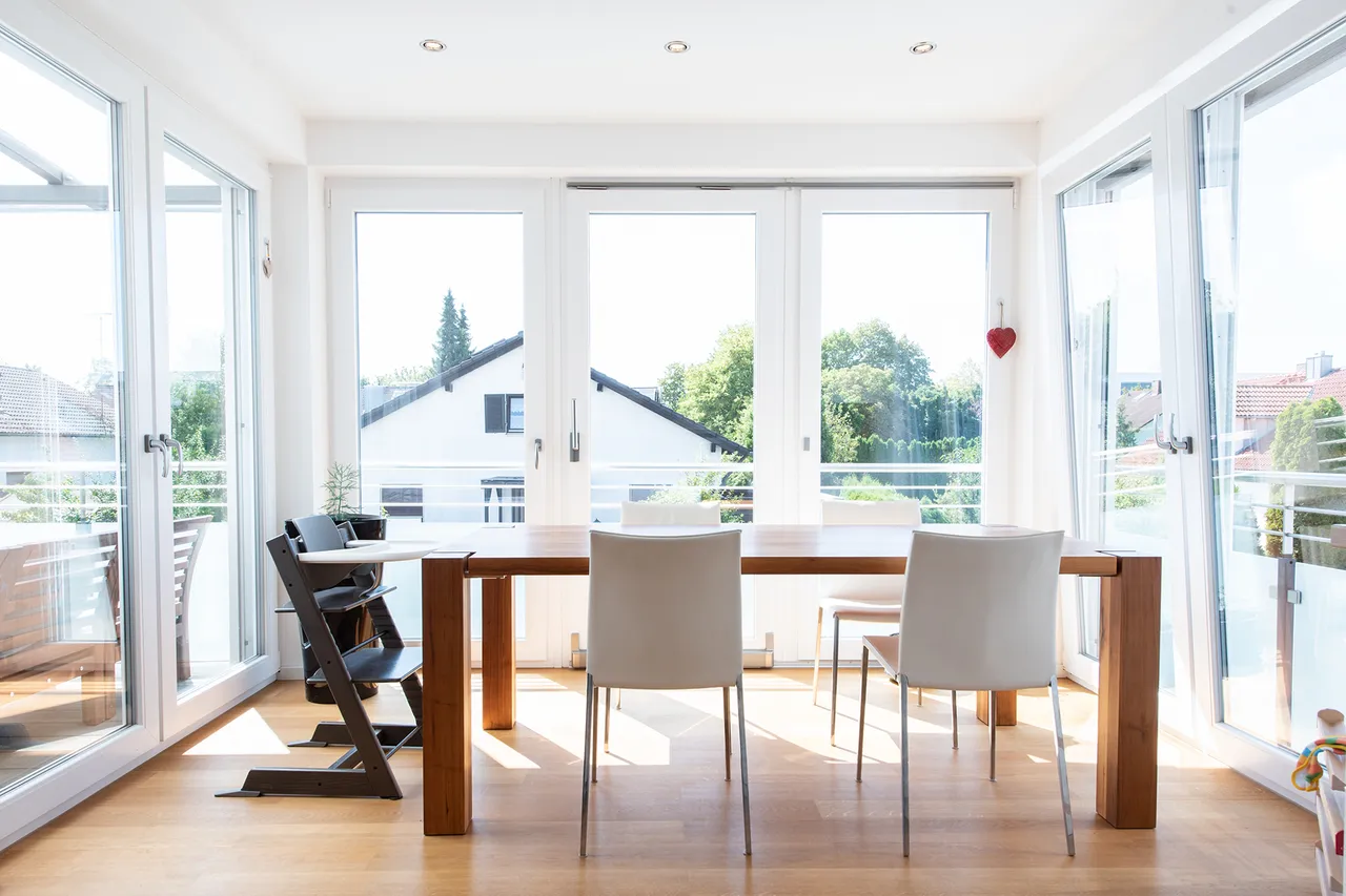 Fenster: Kunststofffenster mit 3-fach-Isolierverglasung (U-Wert Glas 0,6 W/m²K).