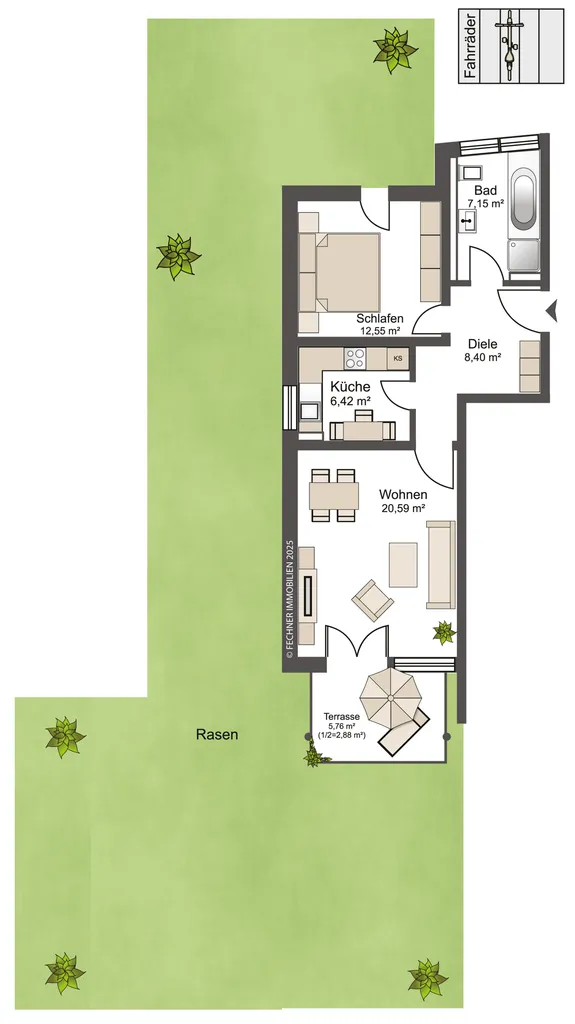 + Der Garten befindet sich in sonniger Südwest-Ausrichtung.