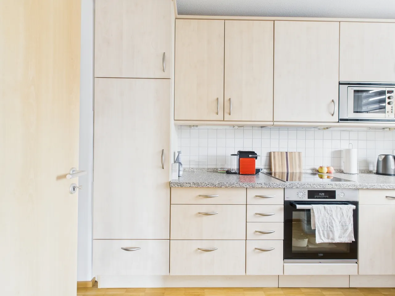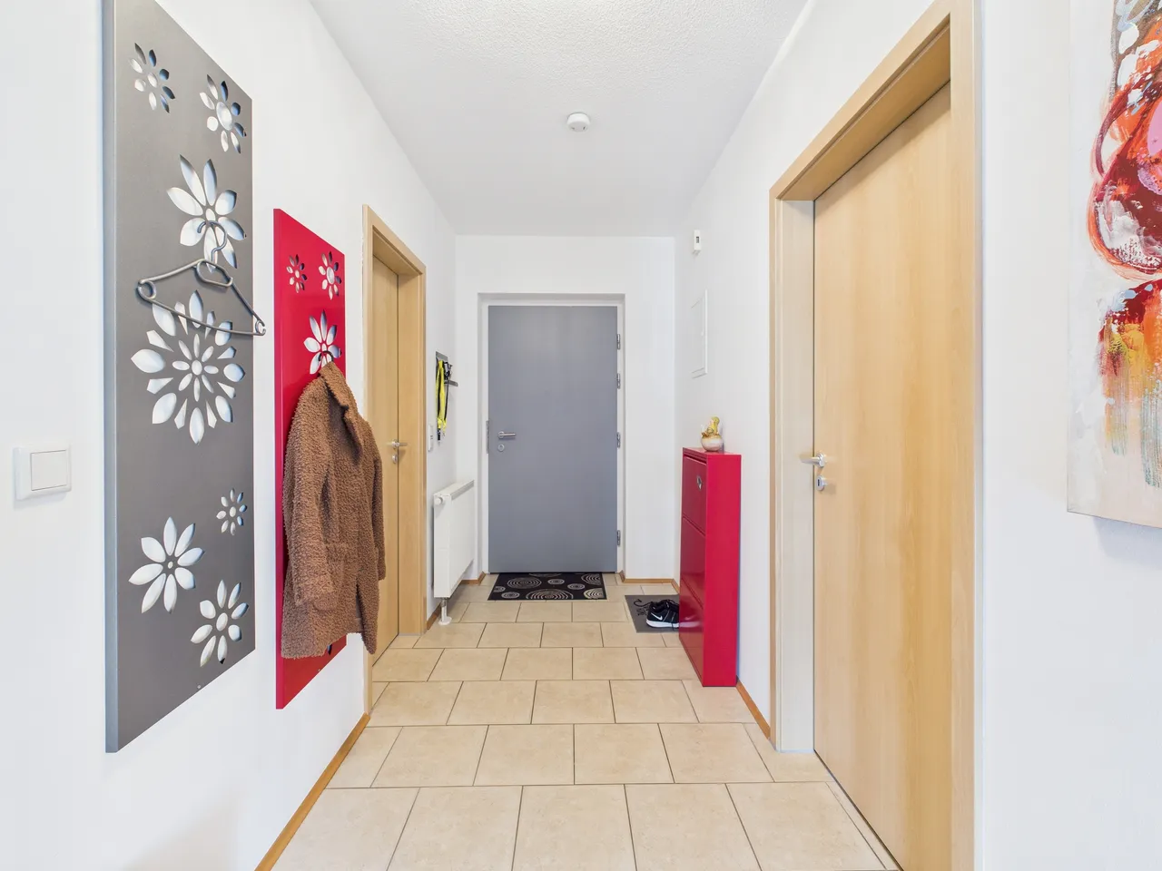 + Die hellbraunen Innentüren sind aus Holz gefertigt.