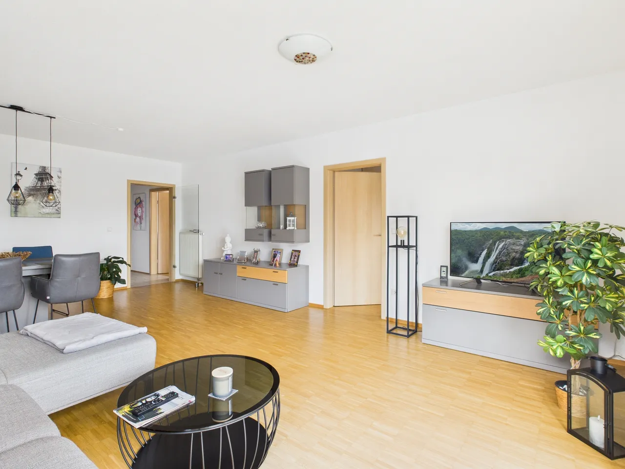 In der Wohnung ist bereits ein Glasfaseranschluss der COM-Ingolstadt vorhanden. Im monatlichen Hausgeld sind keine Kosten für den TV-Empfang enthalten. Dieser ist wahlweise separat zu buchen.