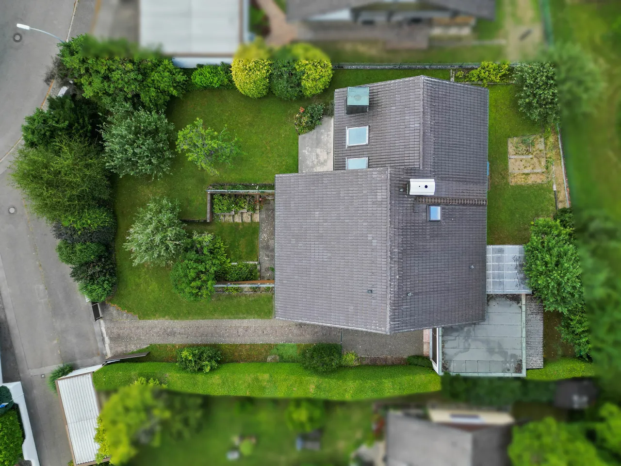 Das Grundstück ist von Süden erschlossen. Auf der Südseite befindet sich auch die Einfahrt zur Doppelgarage, welche im rückwärtigen Teil des Grundstücks unweit des Hauseingangs angeordnet ist. Die Immobilie selbst ist derzeit auch im hinteren Teil des Grundstücks platziert, sodass im Süden eine großzügige Gartenfläche zur Verfügung steht.