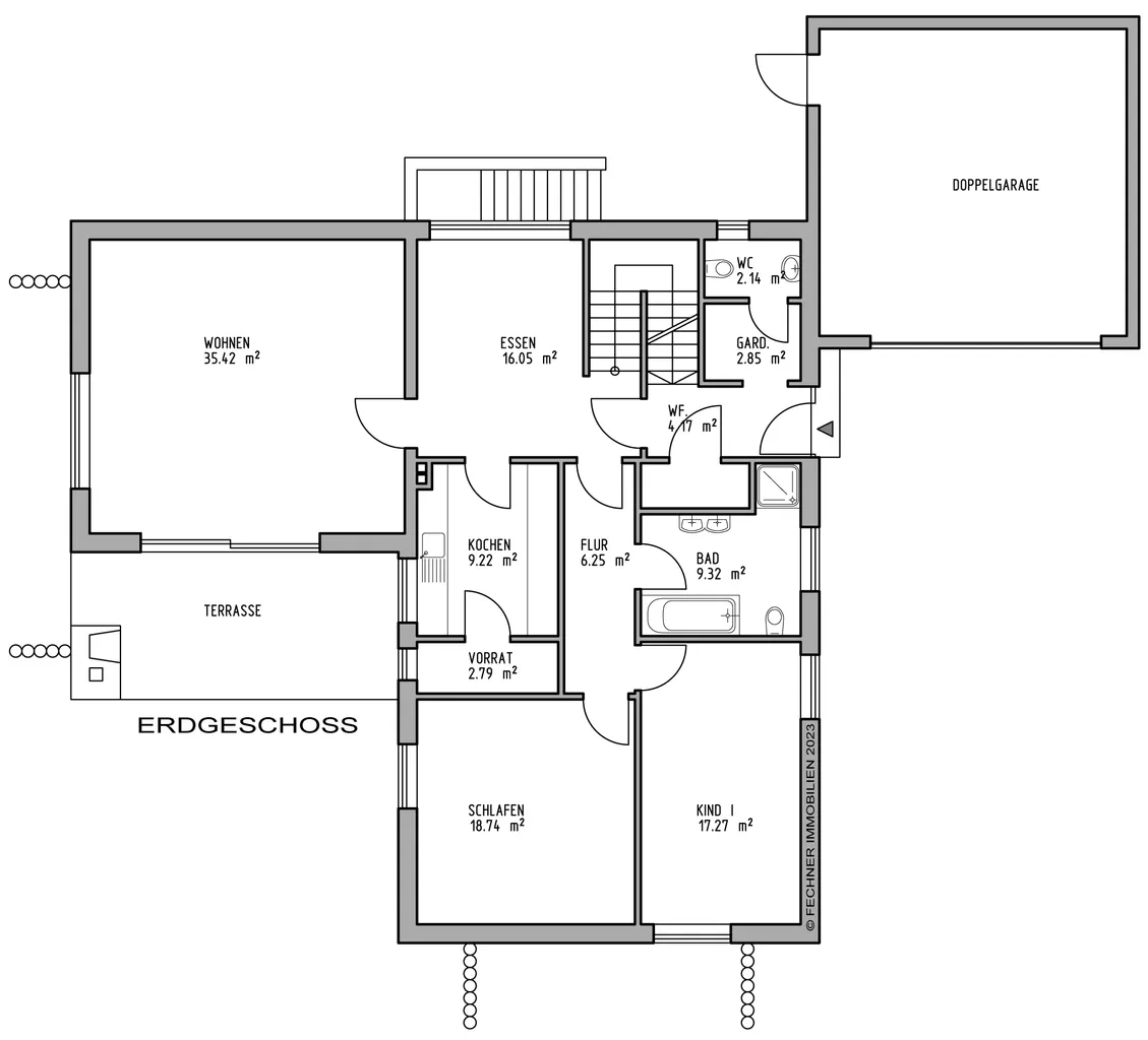 + Eine Doppelgarage ist vorhanden (zusätzlich voll unterkellert).