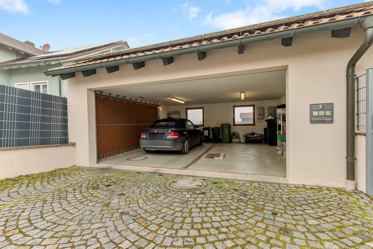 + Parkmöglichkeiten bieten eine große Doppelgarage, eine Einzelgarage und ein Carport.