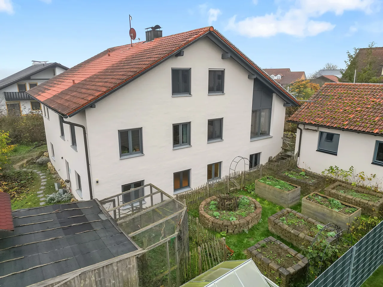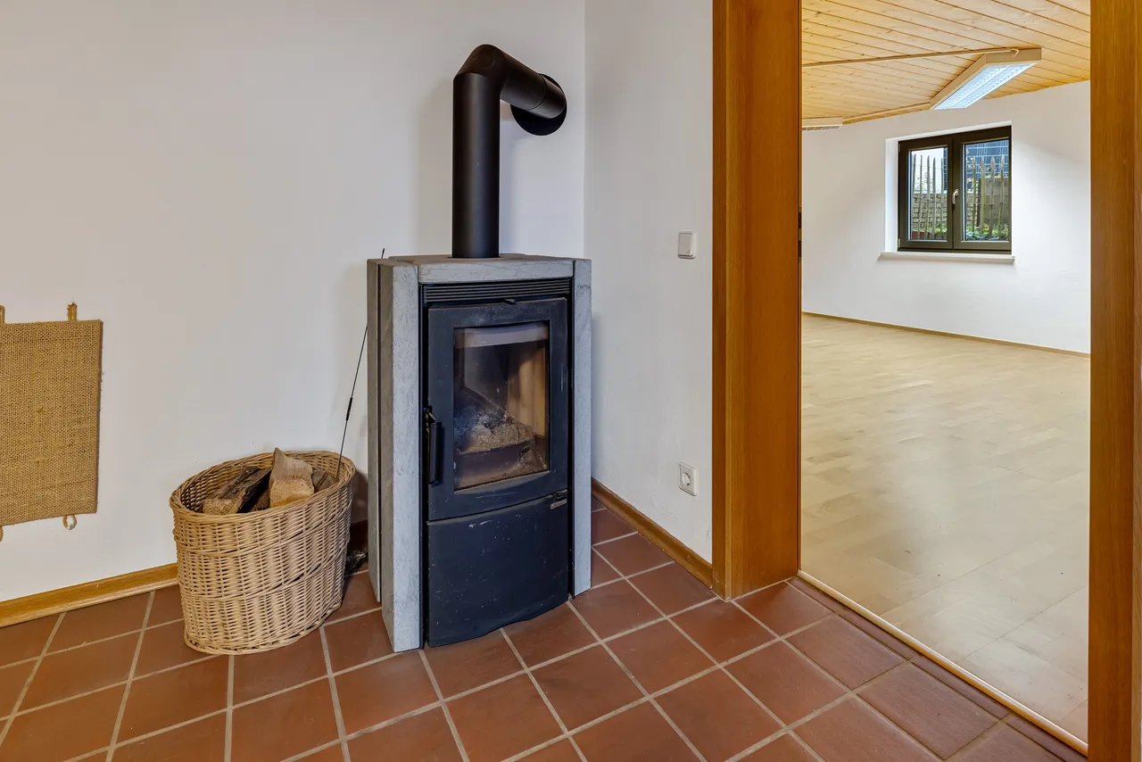 Bereits im Kaufpreis enthalten sind die Einbauküche im Erdgeschoss, die Küchenzeile im Kellergeschoss, das Bad-Mobiliar, beide Schwedenöfen (Erdgeschoss & Kellergeschoss), die elektrische Markise sowie die Photovoltaikanlage.