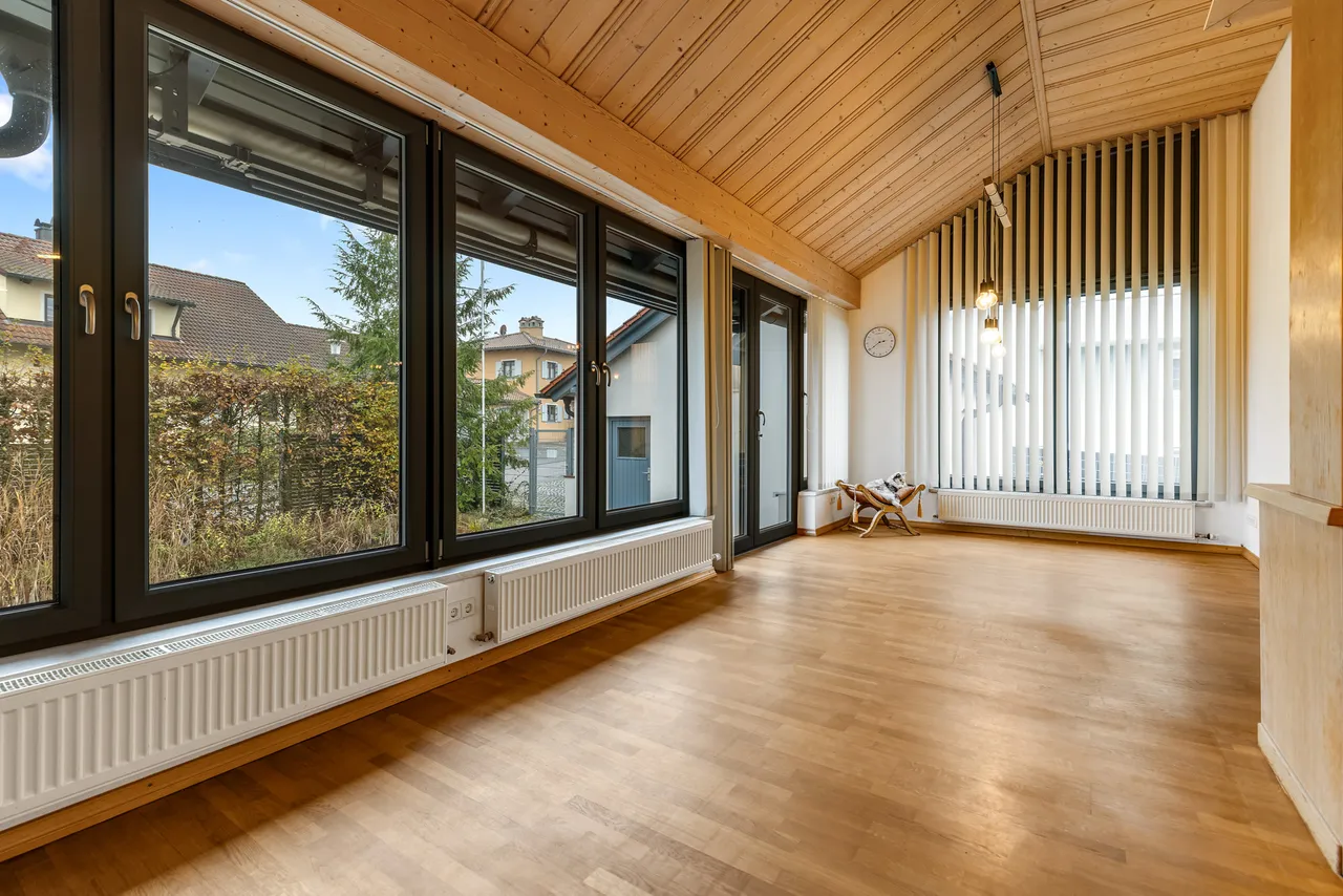 + Ein beheizter Wintergarten lädt zum Verweilen ein.