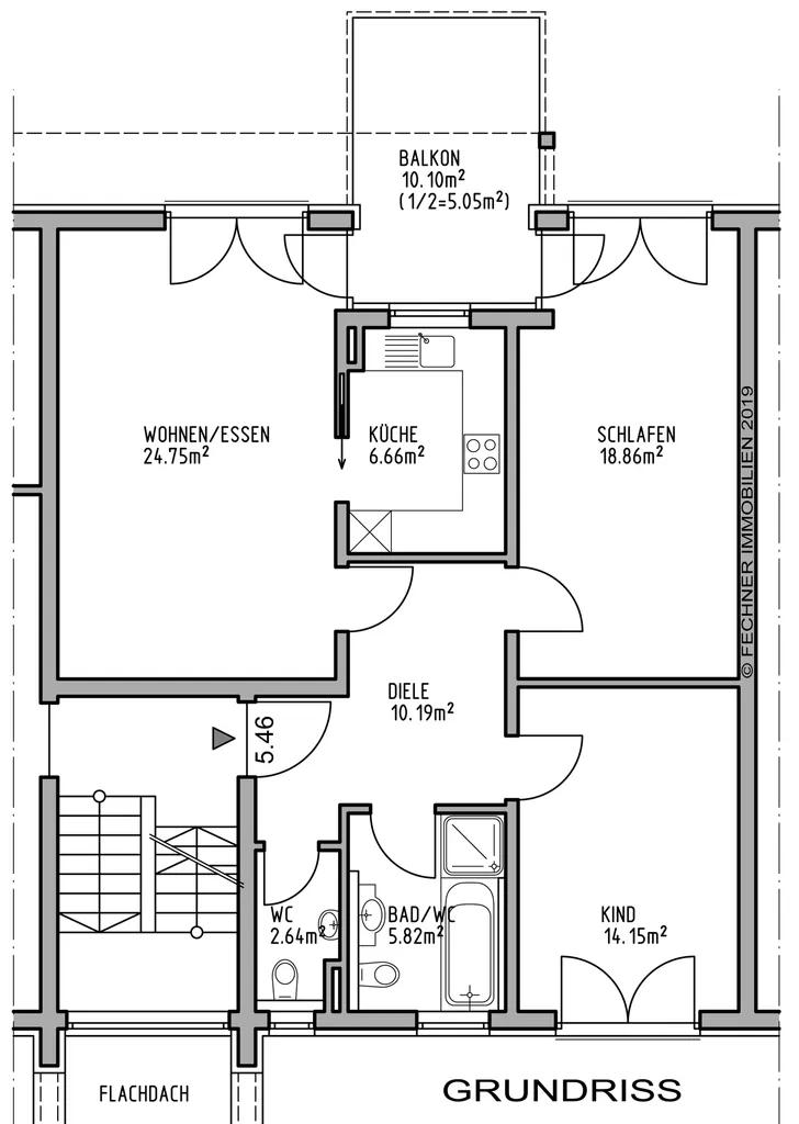 Die Wohnung selbst befindet sich im 1. Obergeschoss und bietet vom Balkon einen wunderbaren Ausblick auf die angrenzenden Felder.